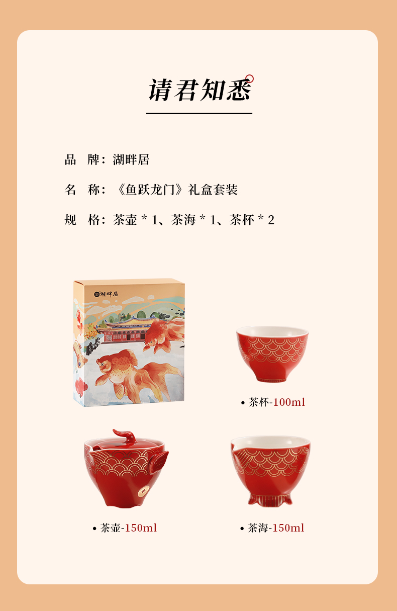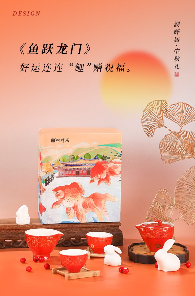【现货】湖畔居2023年中秋节礼盒鱼跃龙门德化白瓷茶具礼品送礼优选
