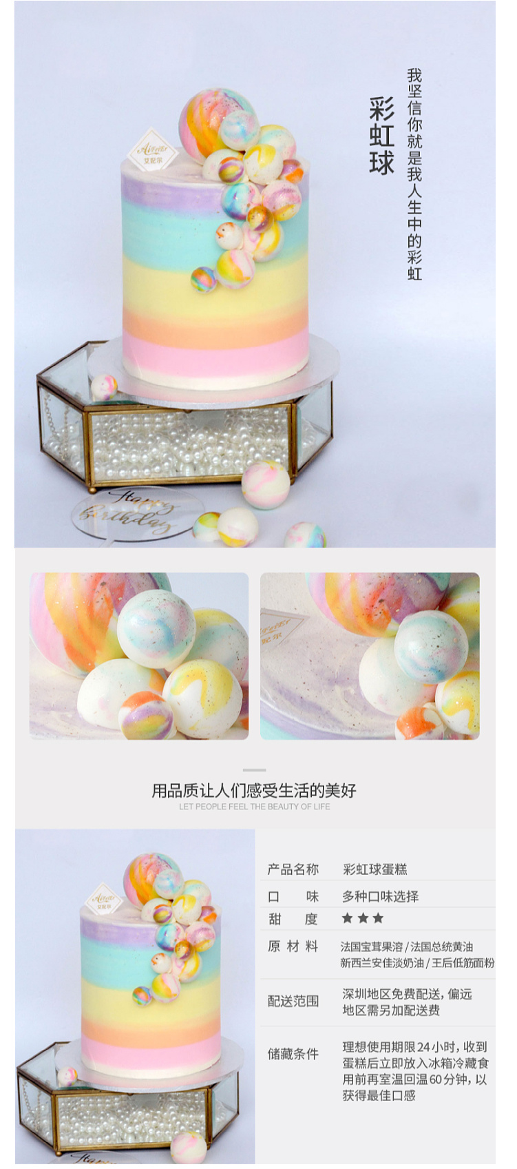 彩虹球巧克力生日蛋糕网红个性创意抖音深圳同城配送