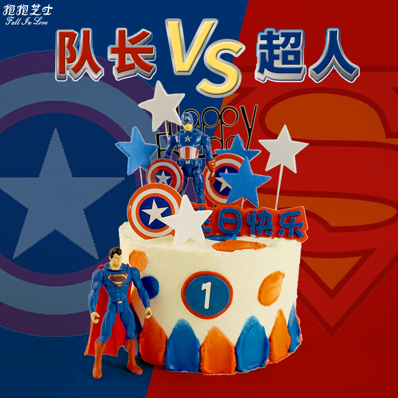 【英雄对决】队长VS超人(可根据寿星的年龄,选择蛋糕前边的岁数数字哦)