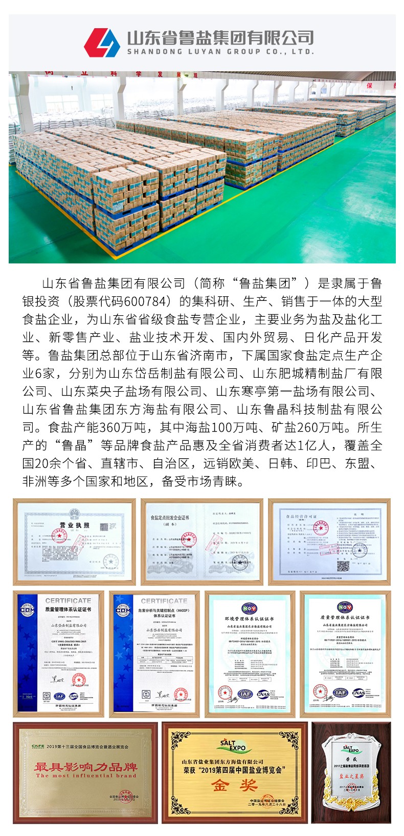 山东省鲁盐集团有限公司(简称“鲁盐集团”)是隶属于鲁银投资(股票代码600784)的集科研、生产、销售于一体的大型食盐企业,为山东省省级食盐专营企业。