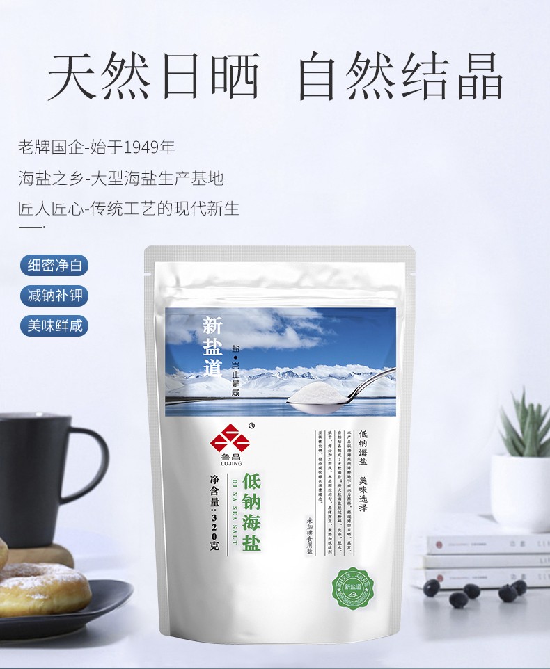 鲁晶低钠海盐精制高端无抗结剂320g*5袋食用盐