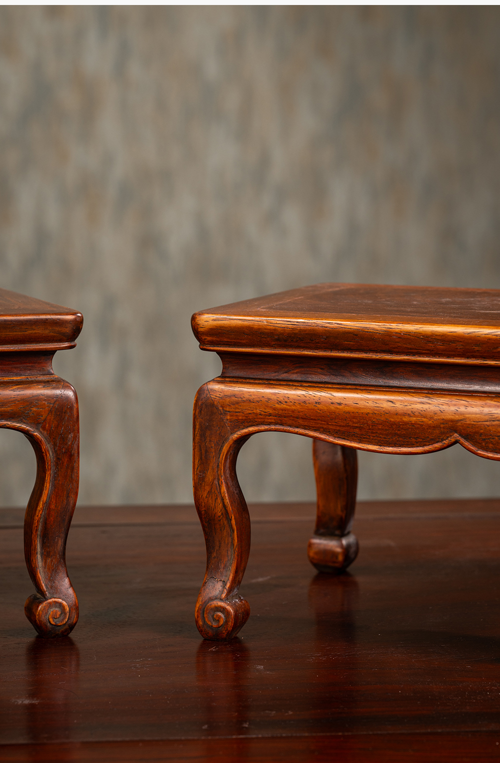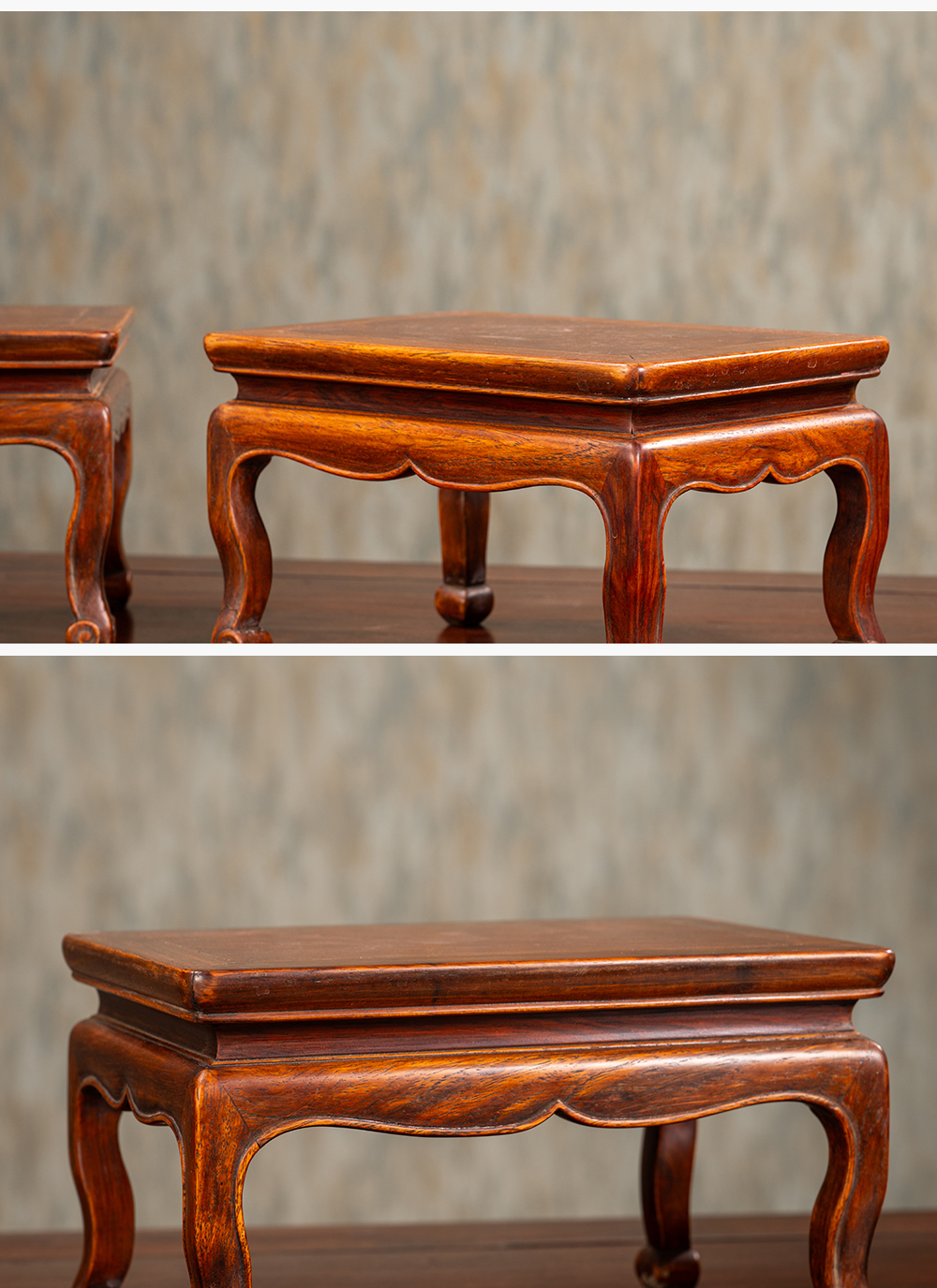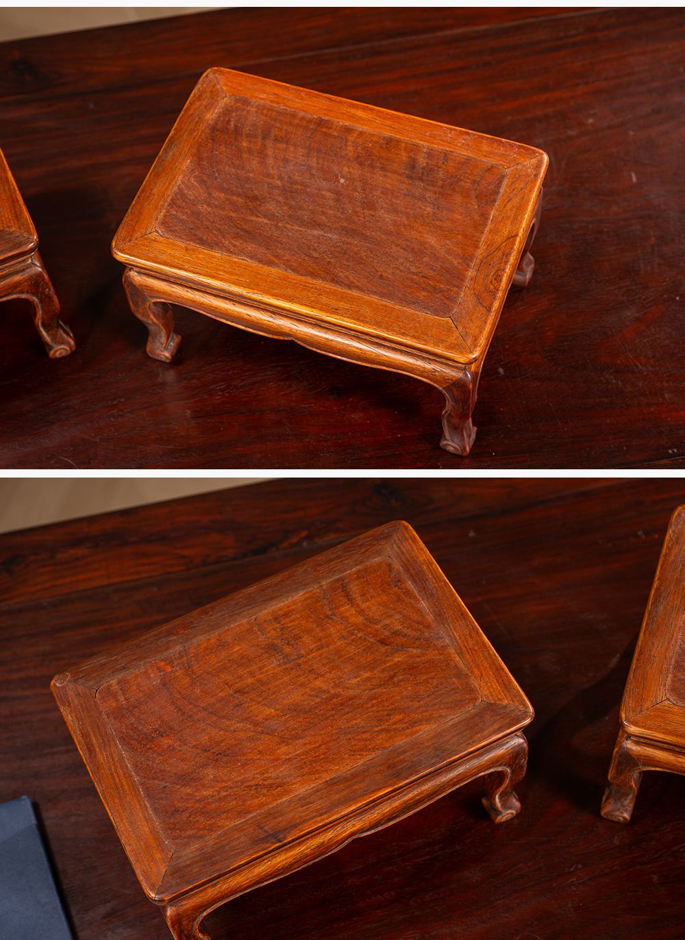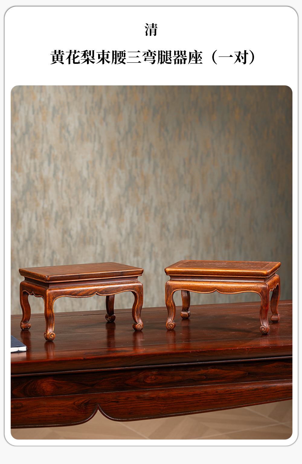清 黄花梨束腰三弯腿器座(一对)