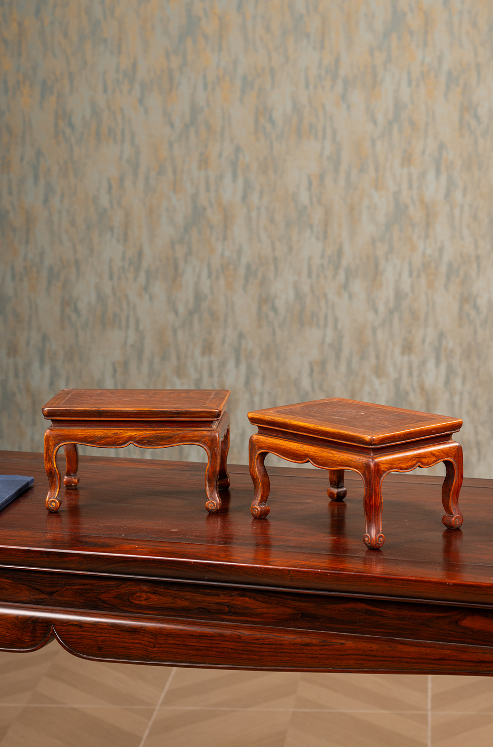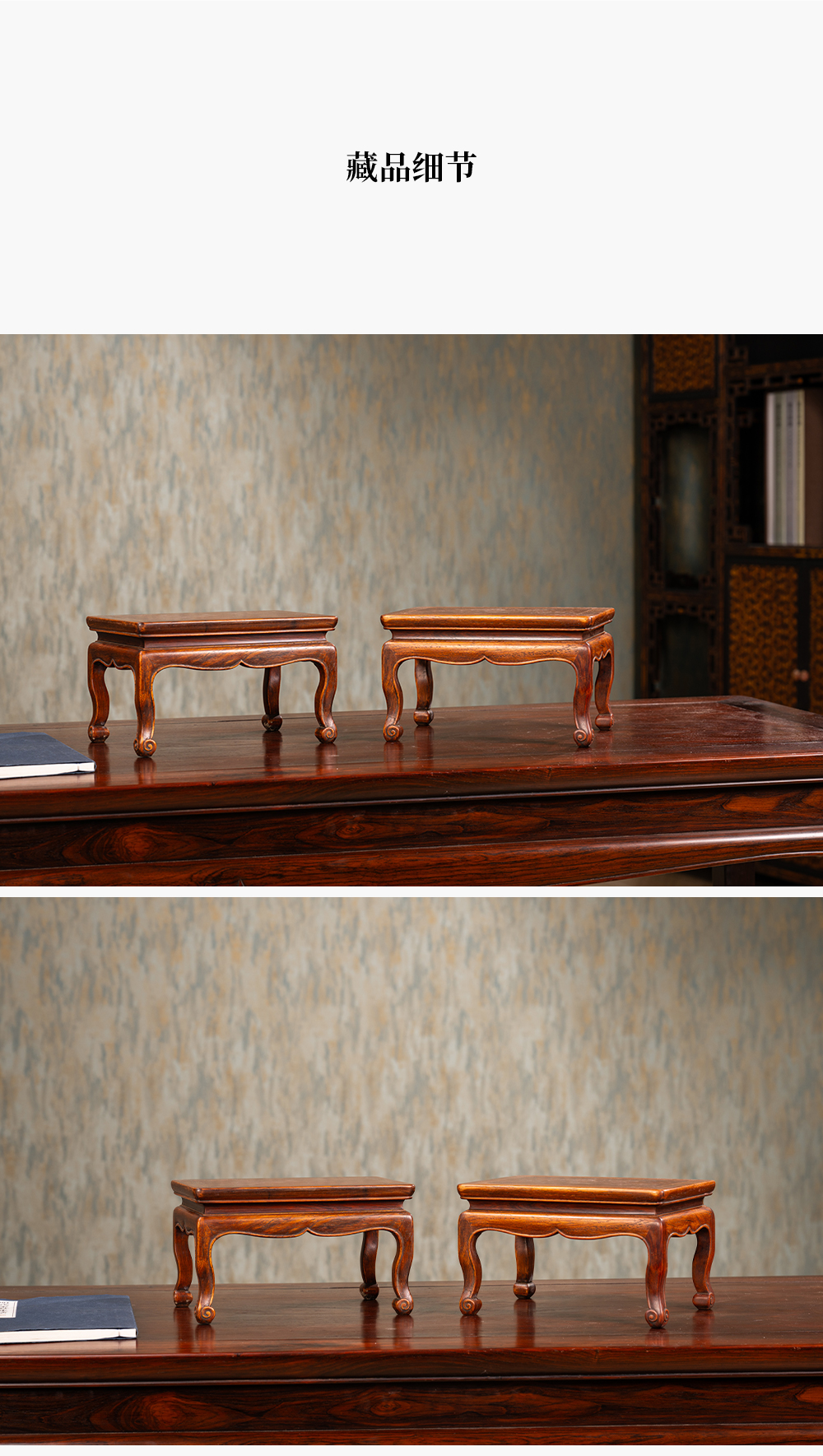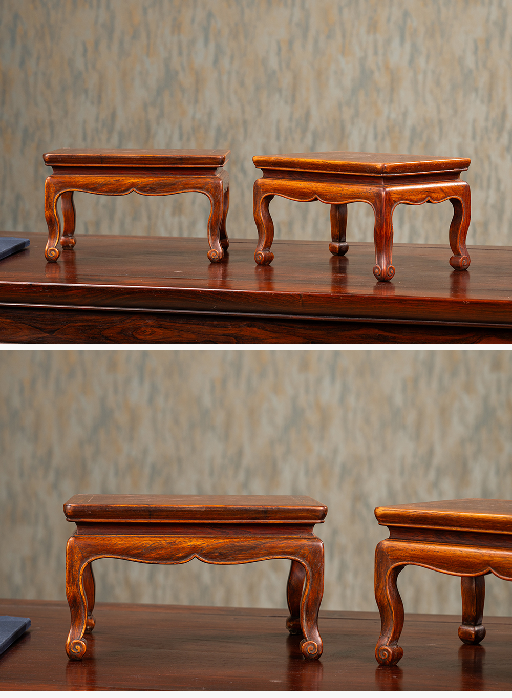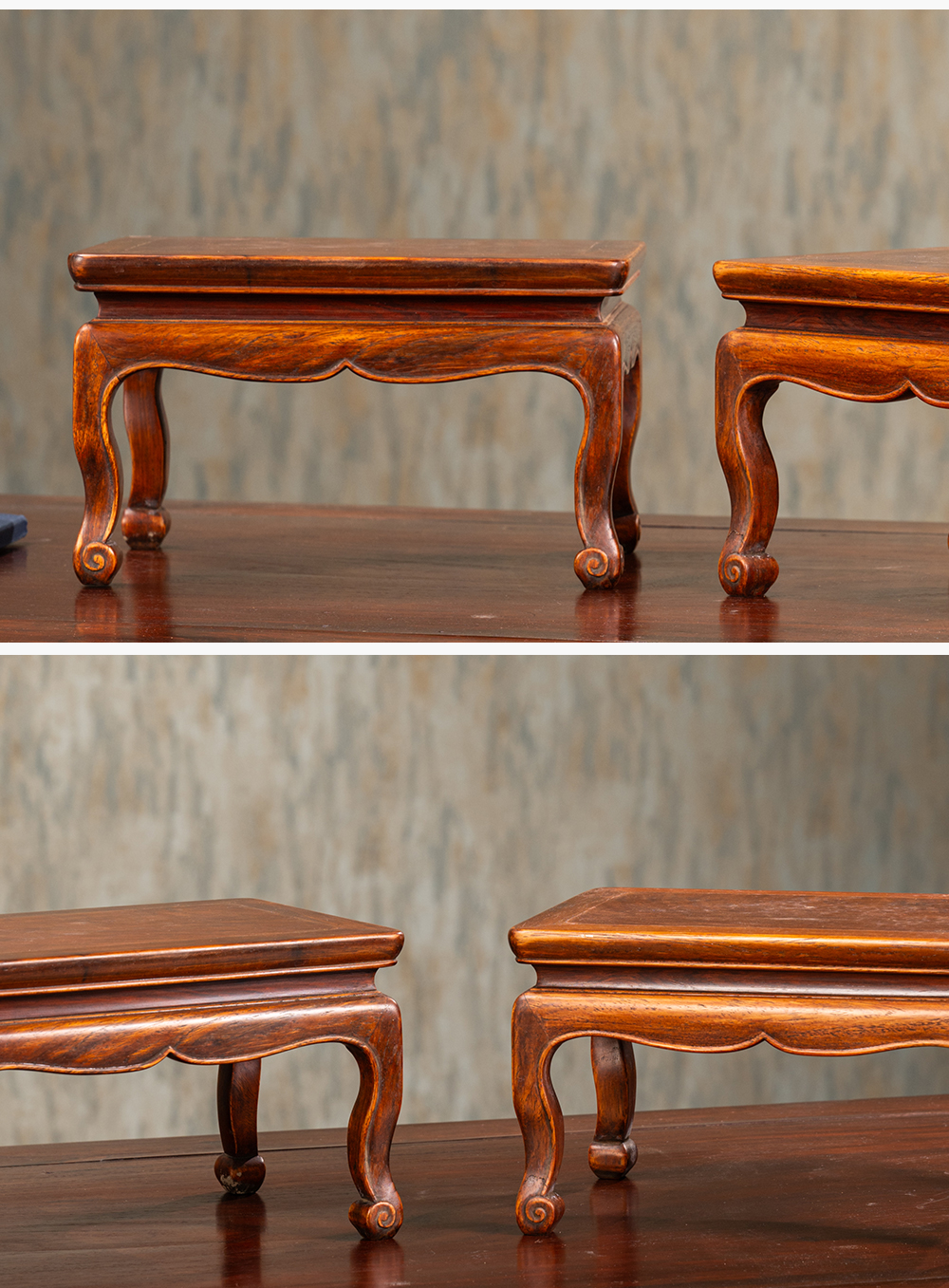 清 黄花梨束腰三弯腿器座(一对)