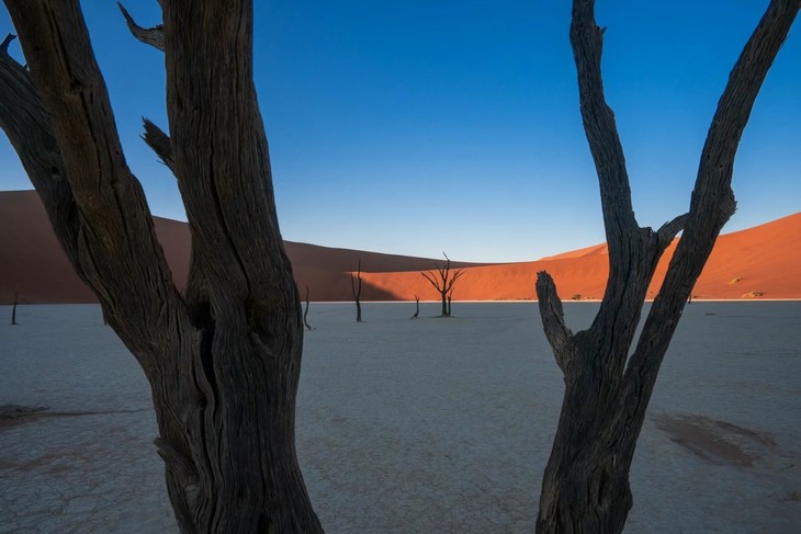 沙漠日出拍摄,驱车前往拍沙丘奇景死亡谷,棵棵屹立了几百年的骆驼刺树孑然伫立,苍凉壮美抵达后步行进入死亡谷拍摄千年古树及壮观的红色沙丘,拍摄及观赏全球最高的沙丘日落。