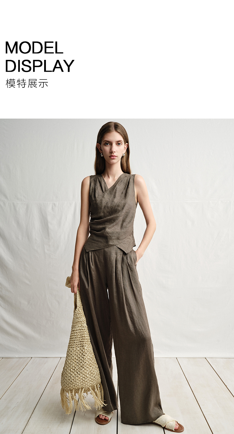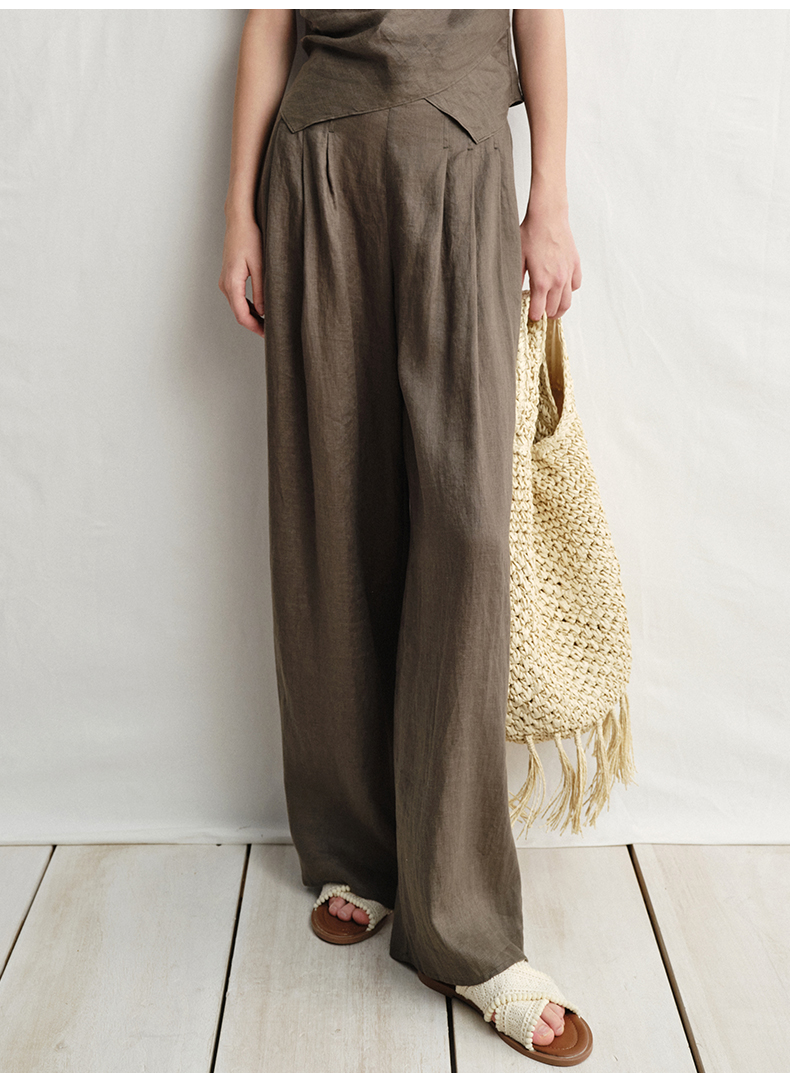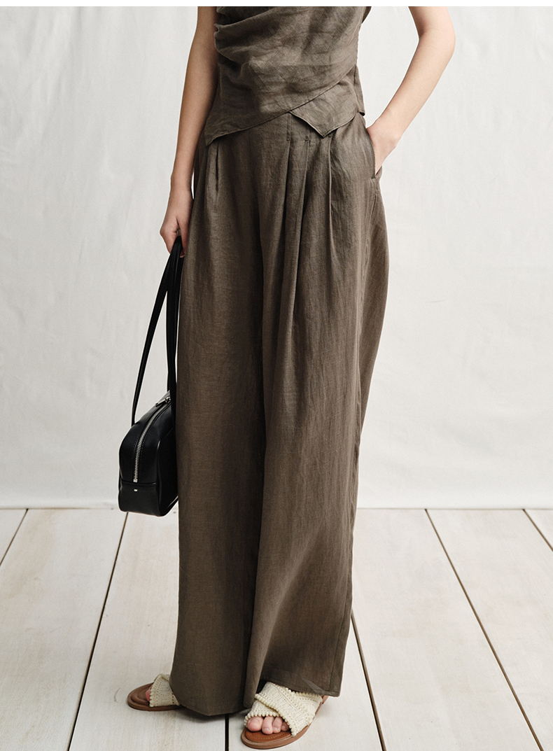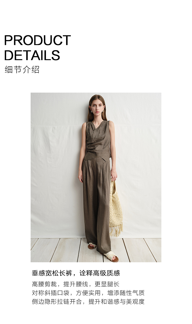 VIMAGE纬漫纪垂坠松弛感阔腿遮肉通勤亚麻高腰休闲裤夏季新款V2305919