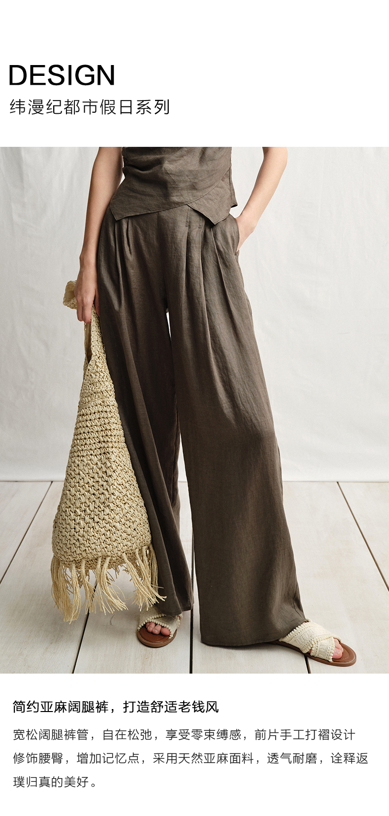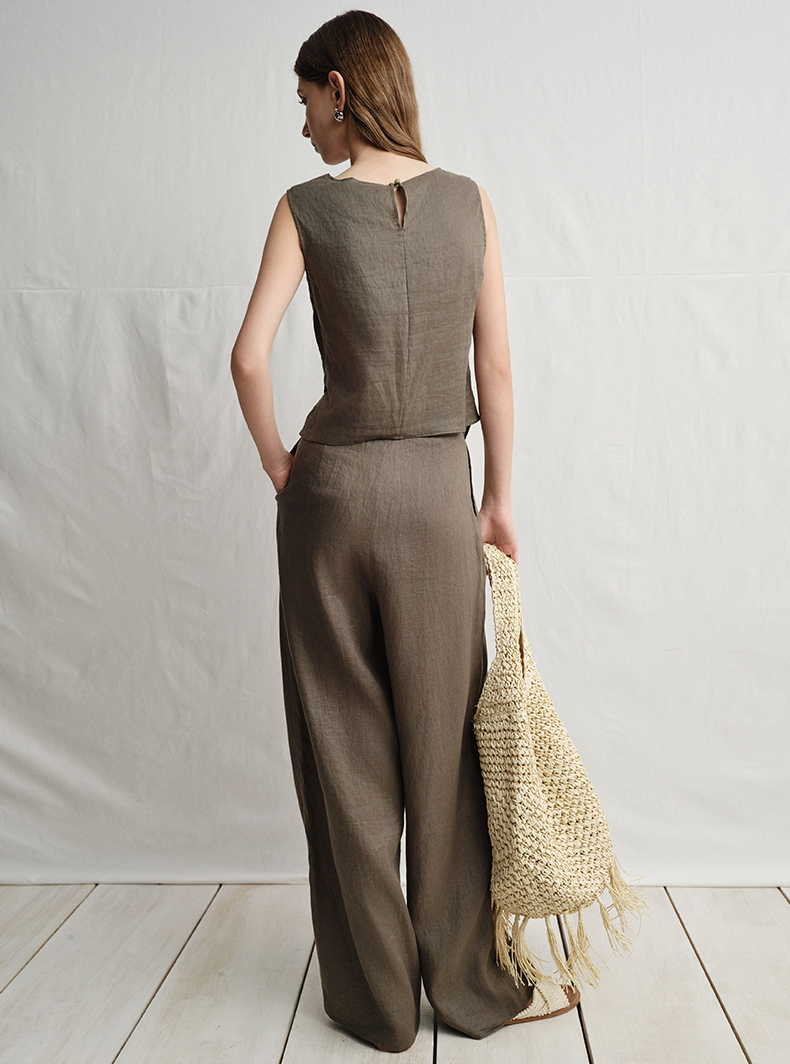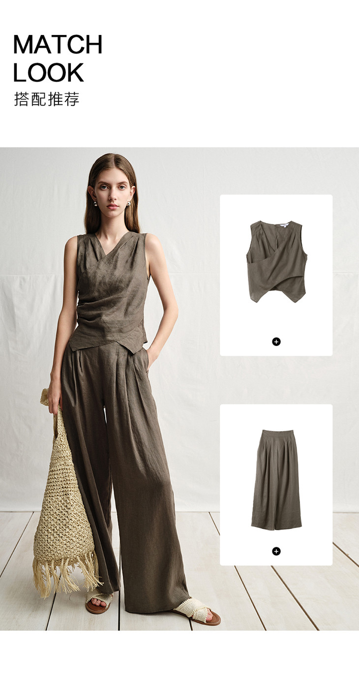 VIMAGE纬漫纪垂坠松弛感阔腿遮肉通勤亚麻高腰休闲裤夏季新款V2305919