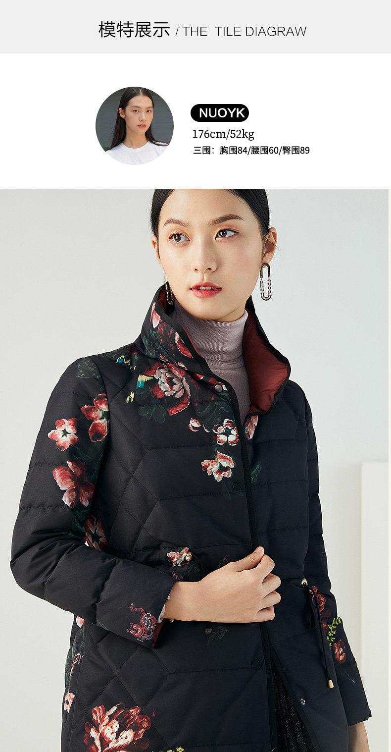 乔万尼华美精致双面穿设计感收腰修身立领保暖防风羽绒服ES4T362