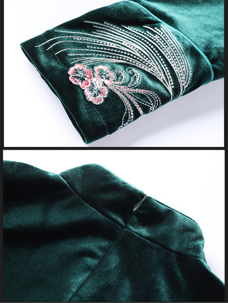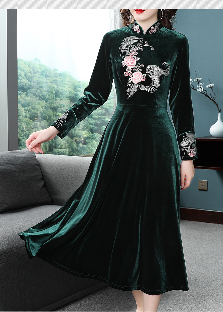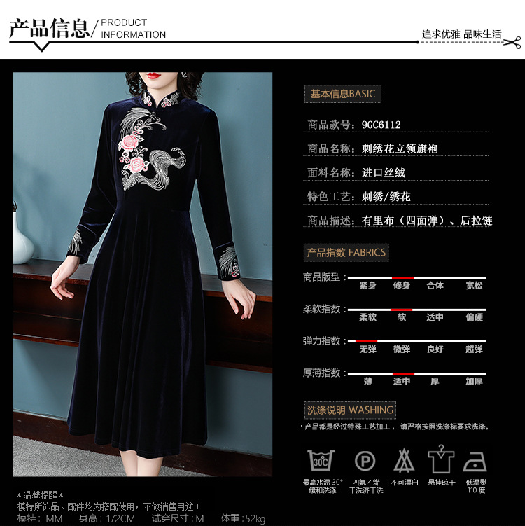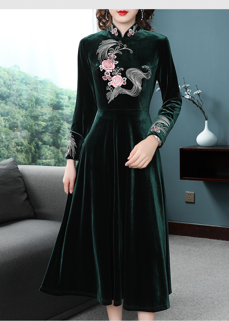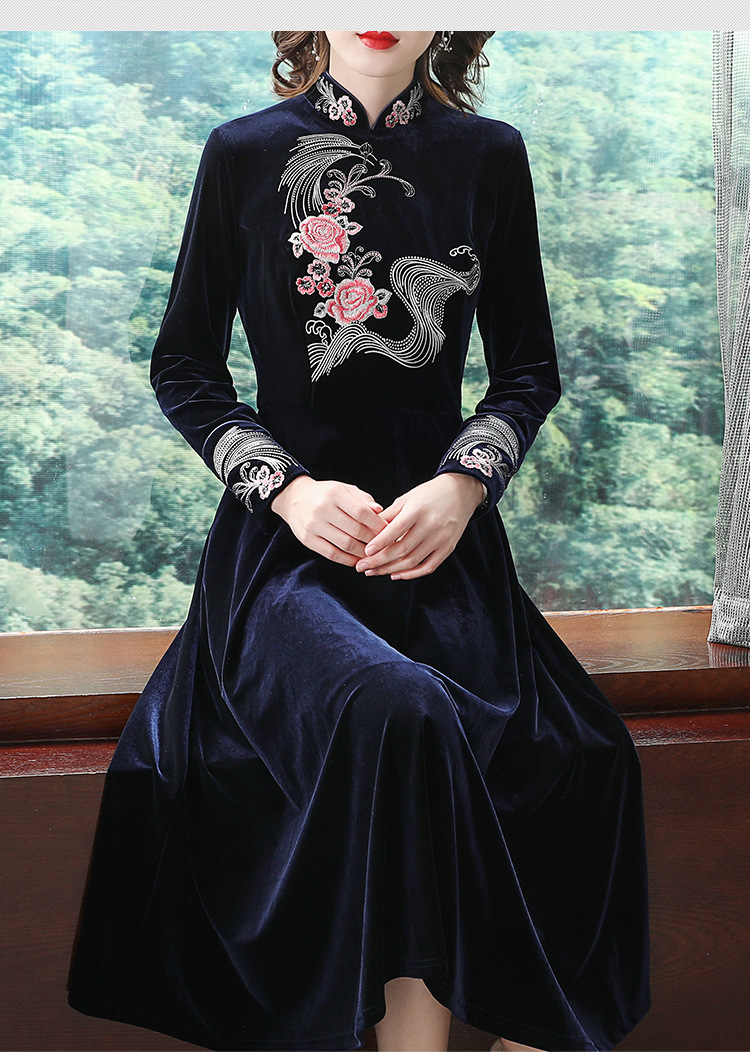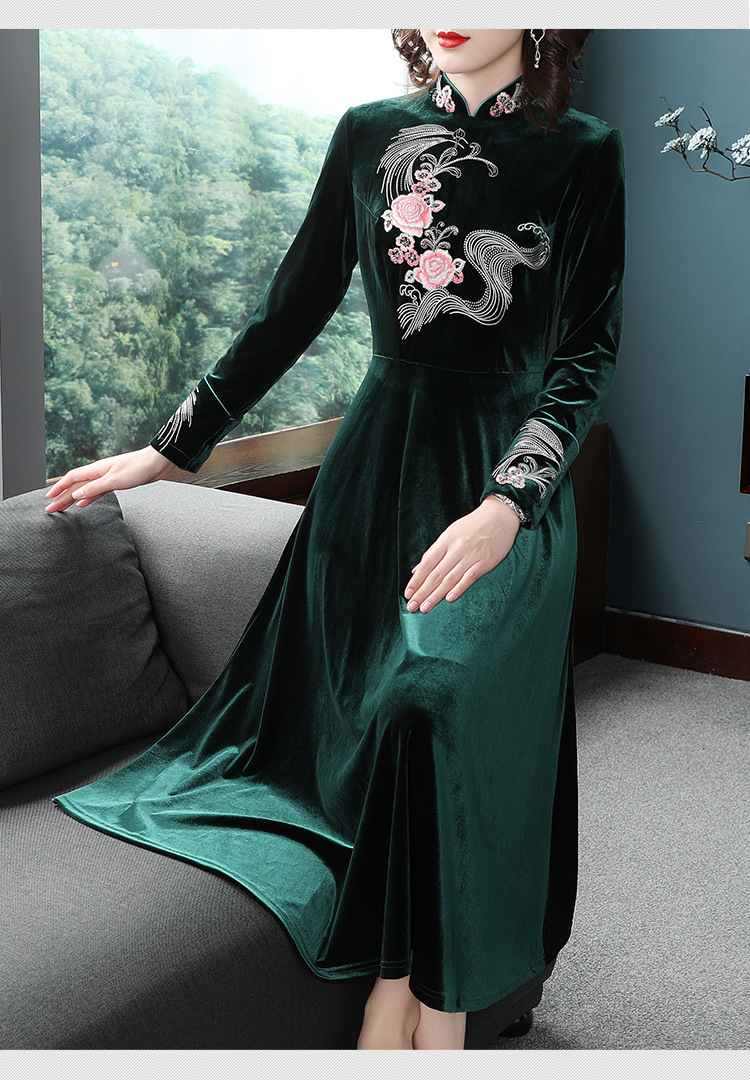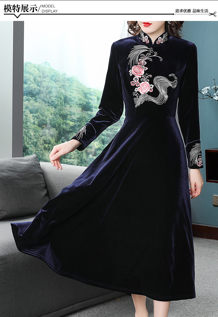 MWYG-9GC6112新款长款民族风丝绒连衣裙长袖刺绣连衣裙