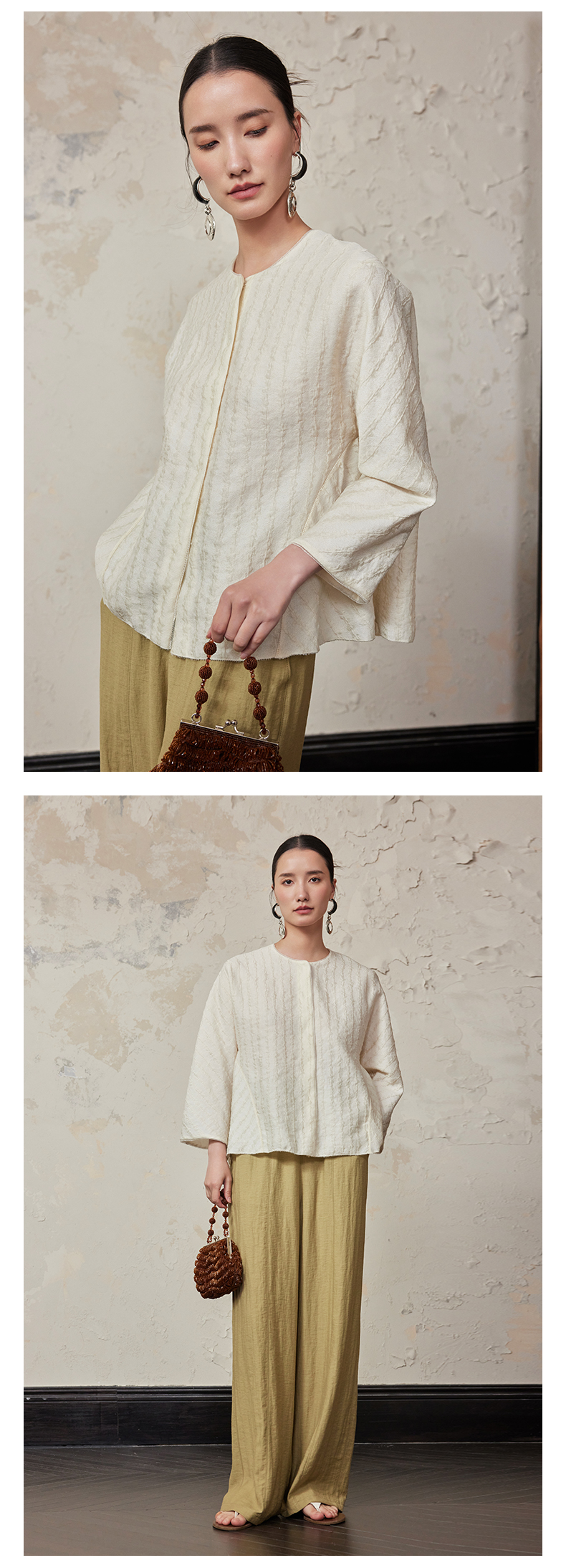 IN AND ON 新款衬衫女休闲宽松时尚简约显瘦全棉上衣21235