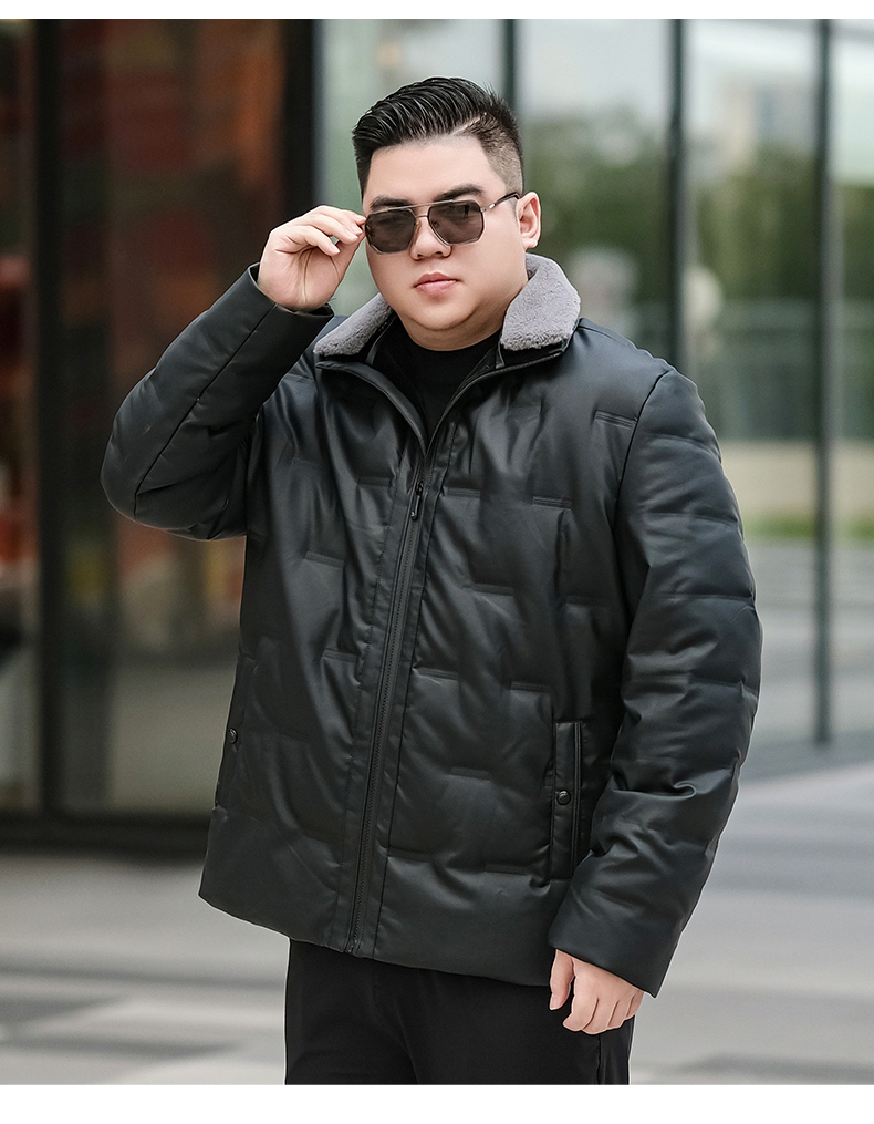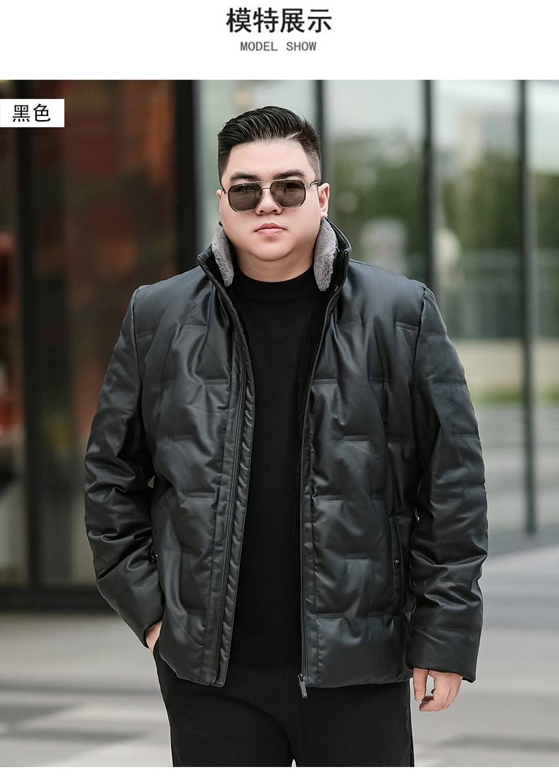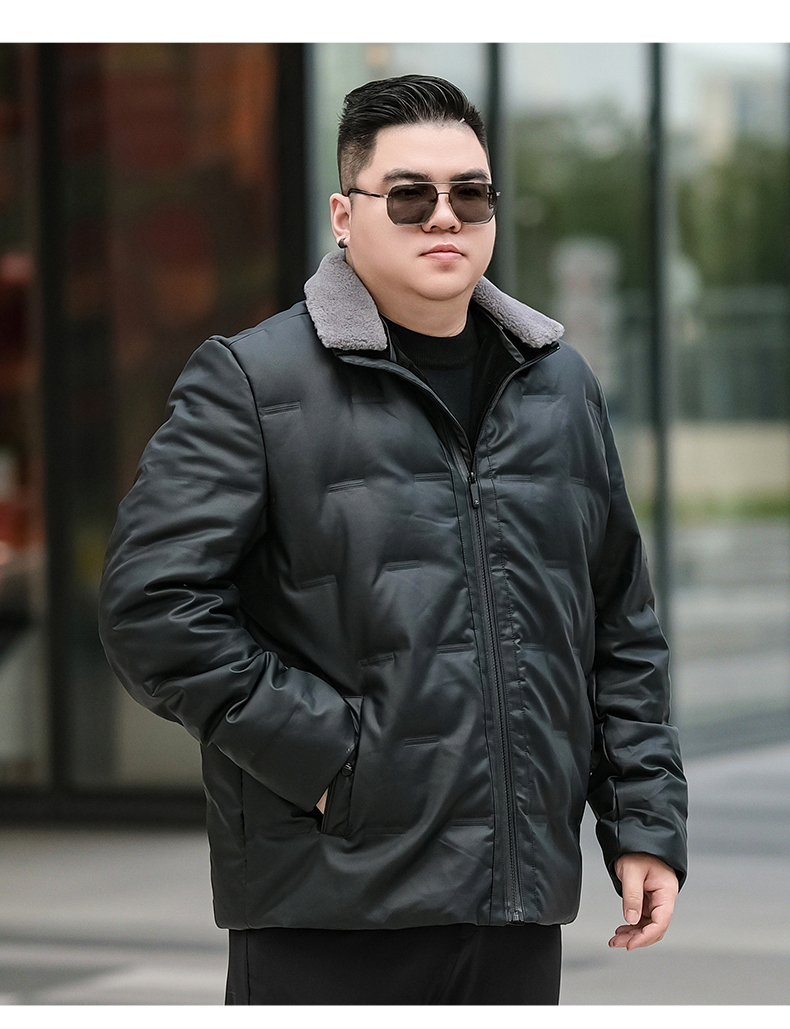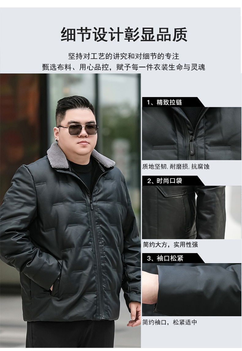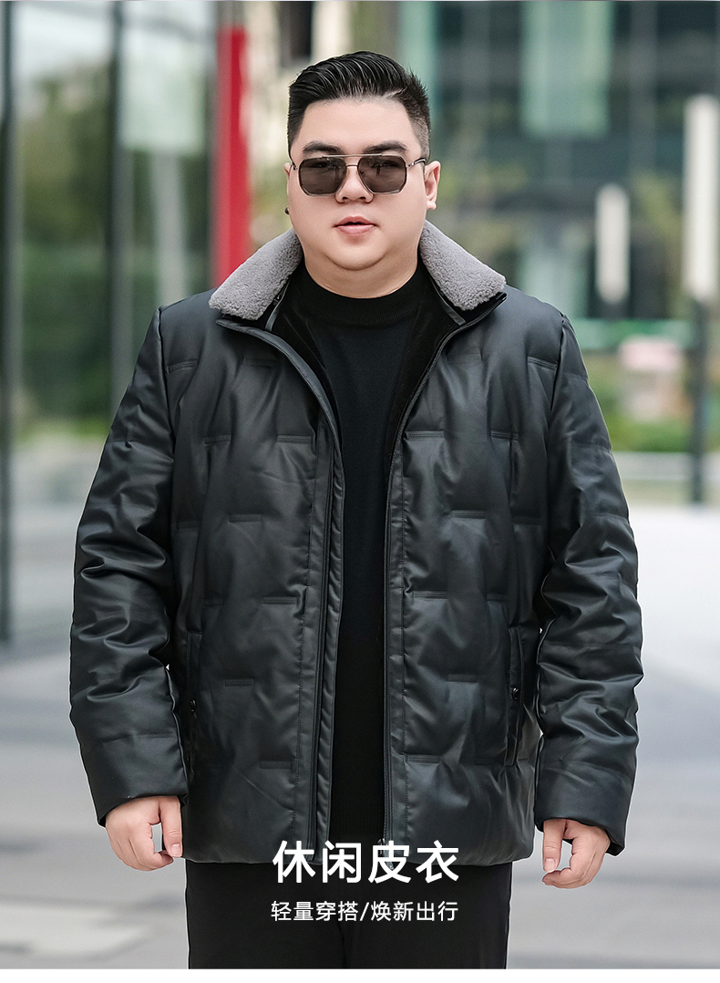 【皮羽绒】【新款DTX】大依优型大码羽绒服皮夹克PU外套加肥加大肥佬休闲上衣男士胖子秋冬