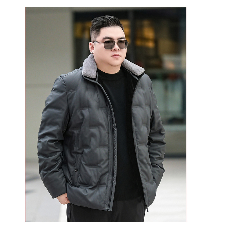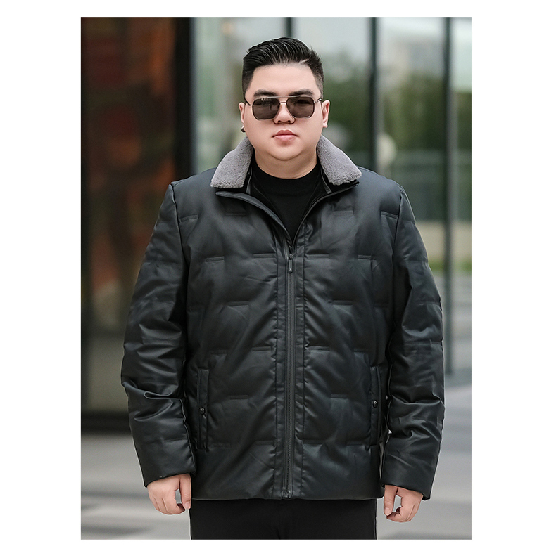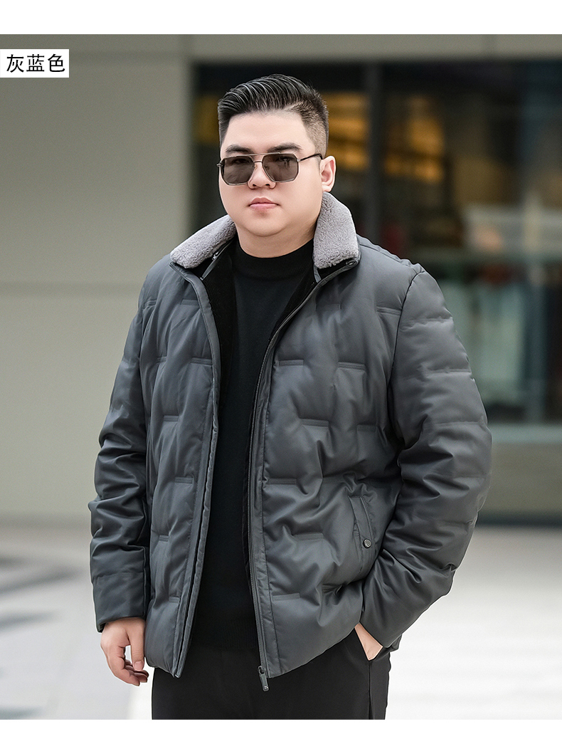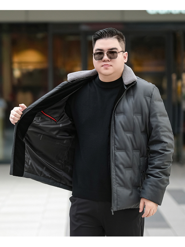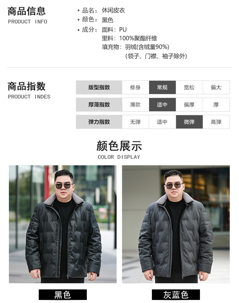 【皮羽绒】【新款DTX】大依优型大码羽绒服皮夹克PU外套加肥加大肥佬休闲上衣男士胖子秋冬