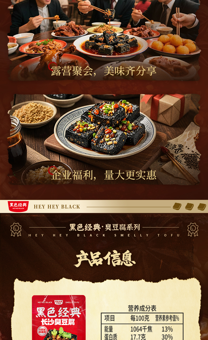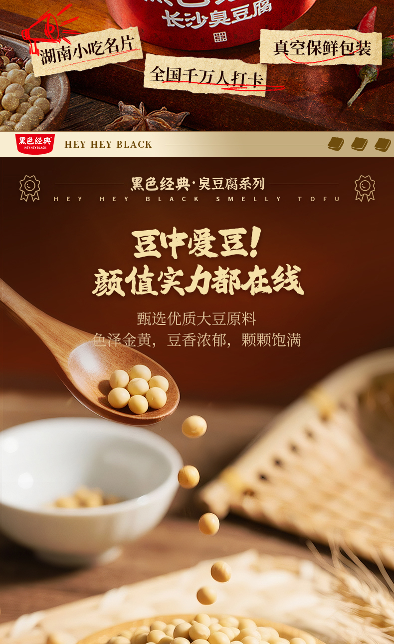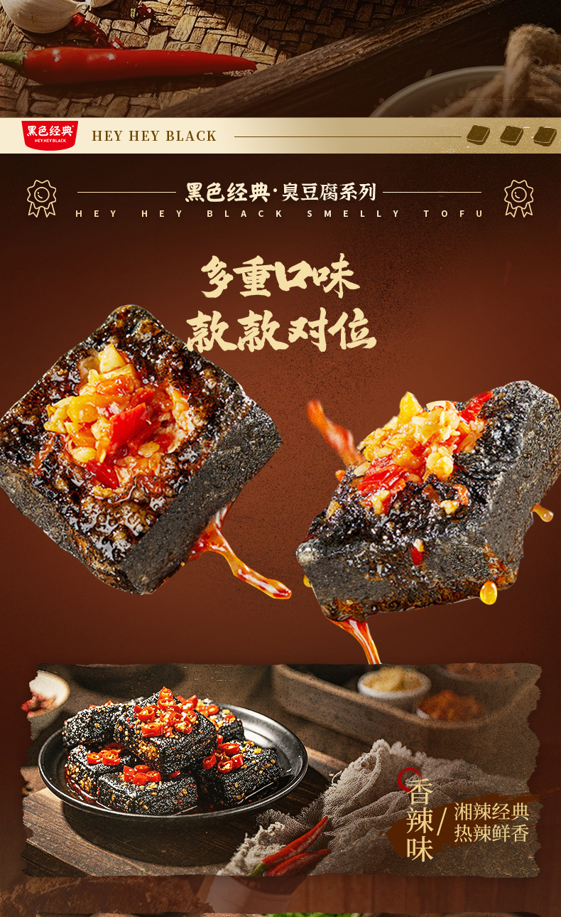 黑色经典湖南特产商城是长沙著名特色小吃“黑色经典长沙臭豆腐”旗下的线上官方商城。黑色经典面向全国,以长沙臭豆腐为核心,辐射覆盖湖南本土特色美食全系列产品,并对所有产品的生产工艺及包装进行了独特的改良。