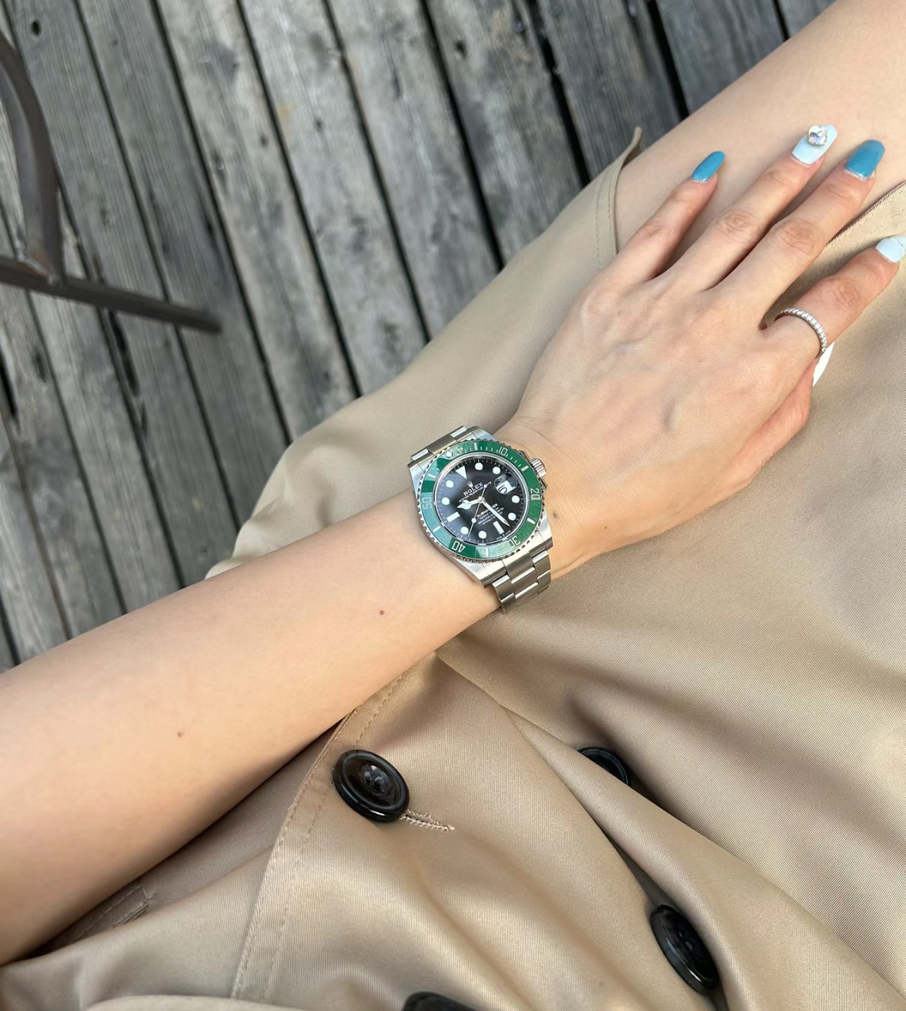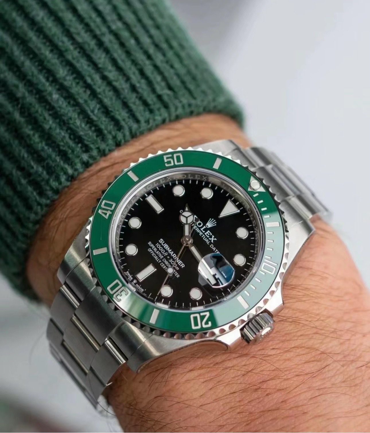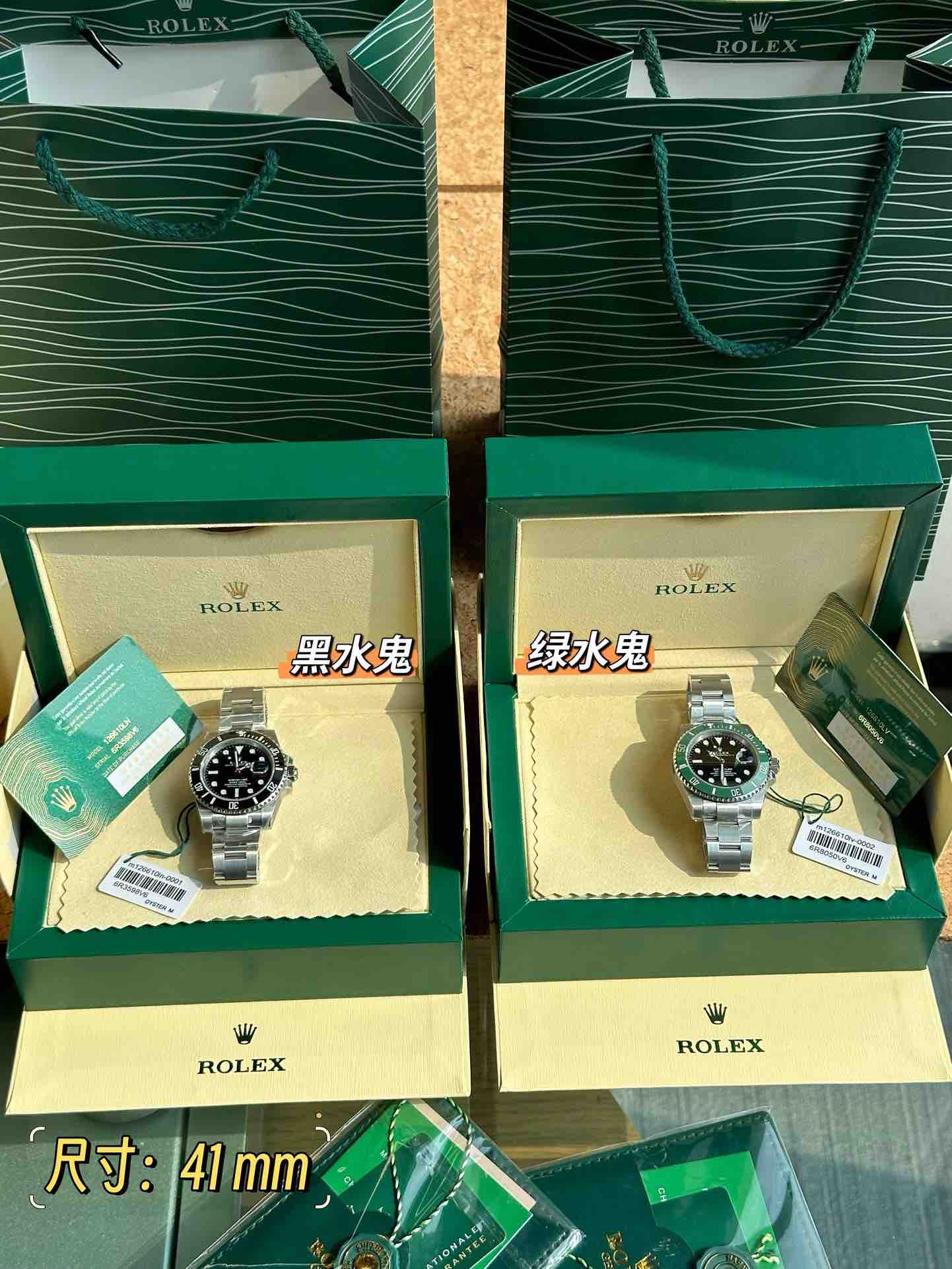 最新限量版【高版本】最新款,完美搭配。最新 劳家 水鬼 6字位自带皇冠,更加上档次,真正41mm尺寸与原装一致,4角表耳变小,表带表扣加宽!真真正正的直径41尺寸!完美版C圈绿水鬼值得拥有,店主强烈推荐款式!此批货数量有限,下单要快,动作要帅!克隆原装Cal.3235一体机芯,可逆调机芯,原版一致,圈口做到与原装百分之95以上,可以说无啥区别,拿两个原装绿鬼放在一起对比也是有色差的,另外圈口刻度不发黑,圈口上的刻度采用物理气相沉积技术,将铂金粉高温涂覆在字体上,使字体颜色耐久,遇水遇油后都不掉色不发黑!✅黑水鬼