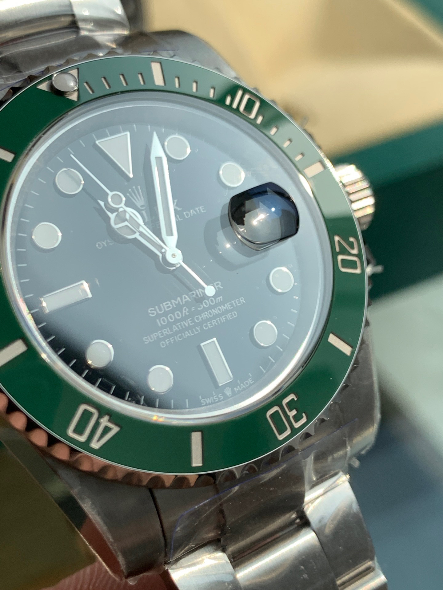 重点牛逼的地方 如下1:全系装配乱真级别Clean厂绿陶瓷圈,全面解析原装Cerachrom陶瓷外圈的成分,用二氧化硅包裹纳米合金着色、剂陶瓷着色的技术,通过不同温度的尝试最终确定了在1200摄氏度左右烧制。工厂多年制劳的经验加之多位工程师的呕心沥血,最终给大家呈现出了殿堂级的绿色圈口,肉眼下专业人士也很难分辨真伪,彻底碾压了市场目前所有版本。