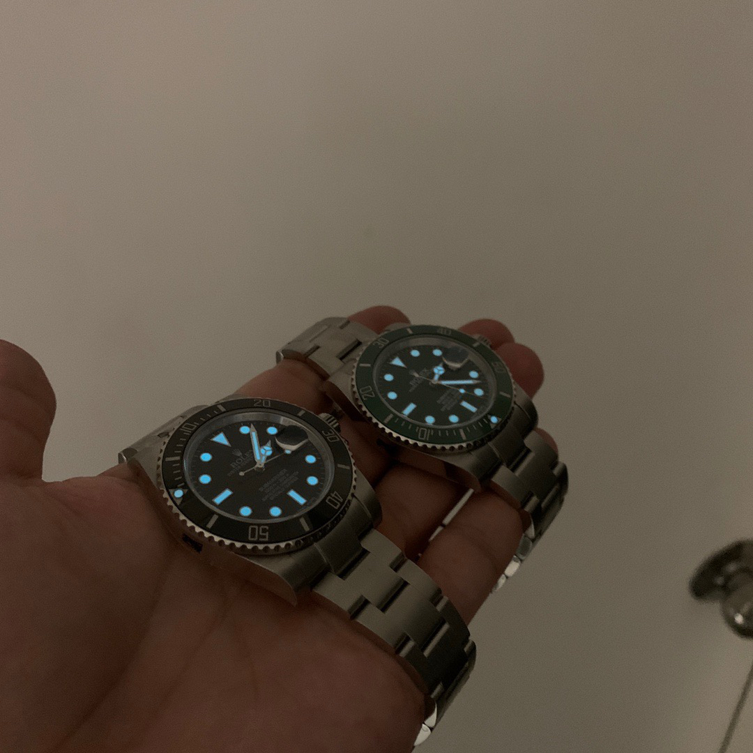 2:转动牙圈里面4个珠子改为原装一样的圆珠子,转动圈口发出清脆声音。3:进口蓝宝石玻璃高透耐磨损,最重要的是玻璃高度与原装一样比陶瓷圈肉眼看似乎是与陶瓷圈成水平行线!4:表镜面与陶瓷圈之间有条缝隙跟原装一模一样,毫无差别!5:字面刻度圆钉的夜光石饱而不溢,在黑暗的环境下程现冰蓝夜光,刻度边缘打磨细腻与原装一样圆滑,字面字体印刷修正与原装一致!6:表针与原装一样为实心中轴,不再是一眼假的空心轴!7:表壳尺寸厚度与原装一致!