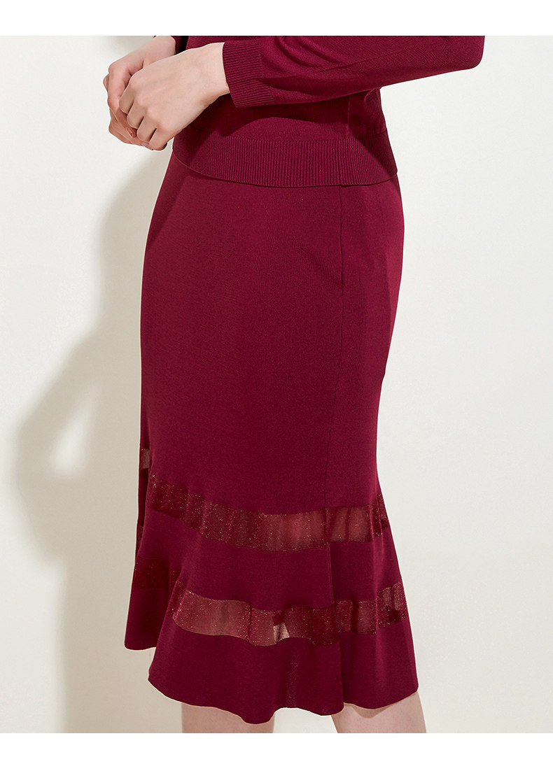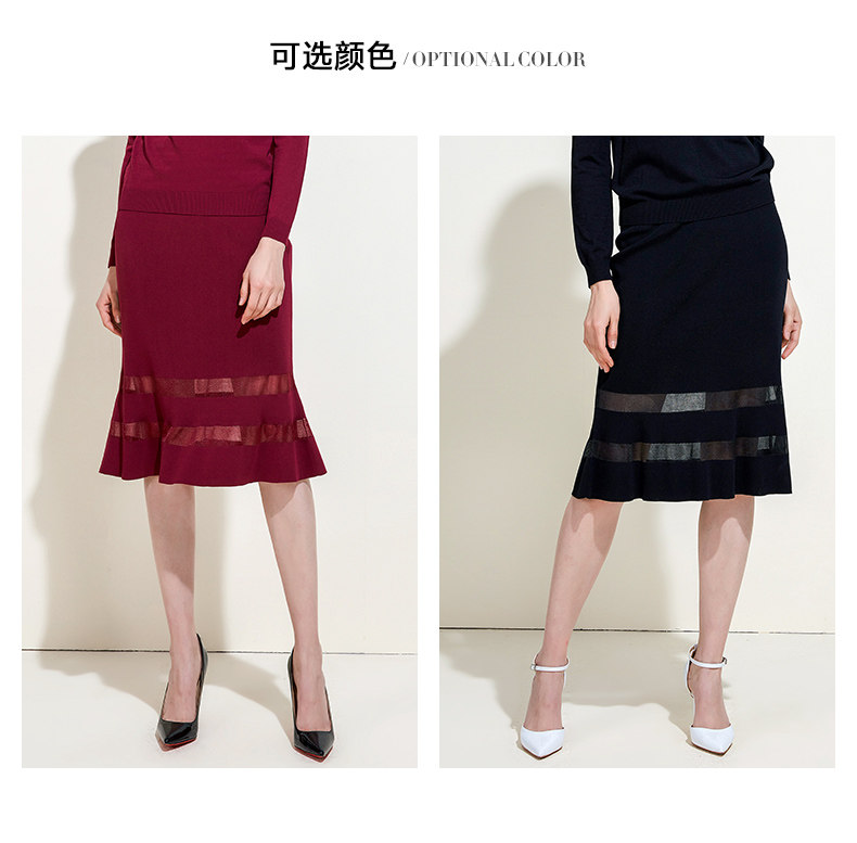 EITIE爱特爱女装春夏季透视弹力修身舒适荷叶边裙摆半身裙5901604