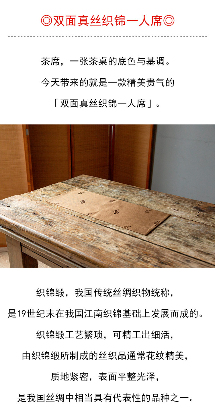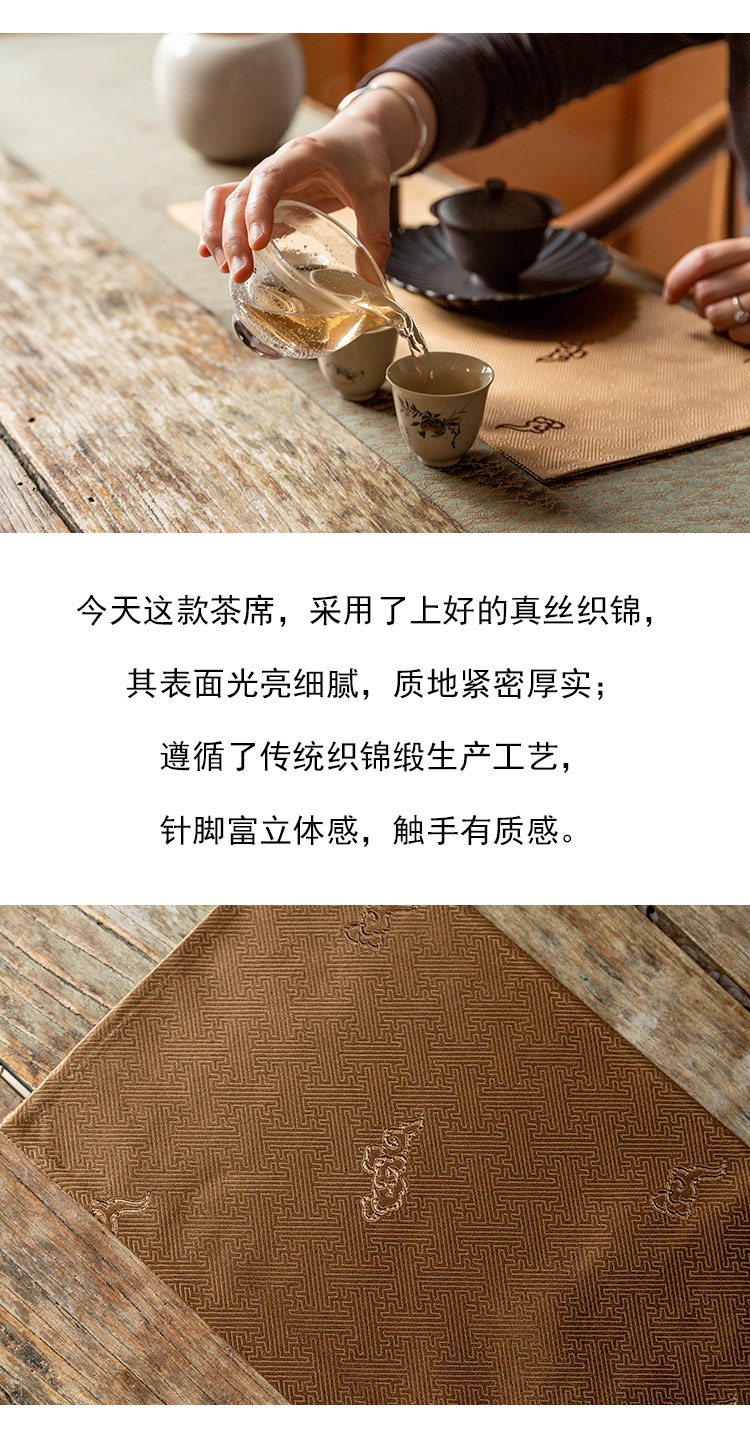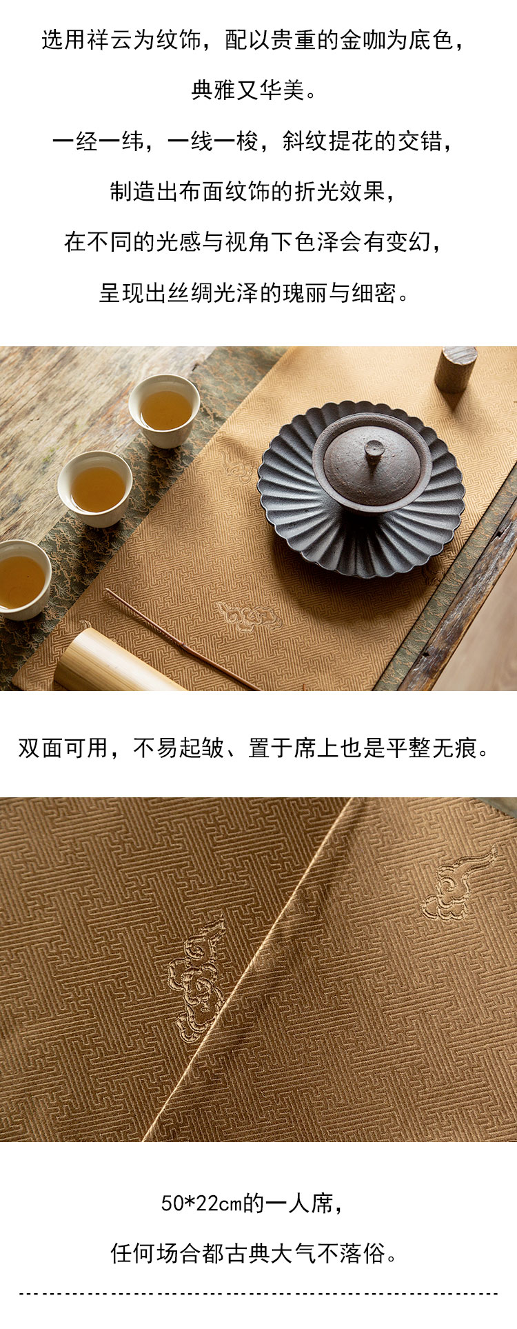 茶香记 双面真丝织锦一人席 金咖祥云 传统工艺 茶席 典雅精美