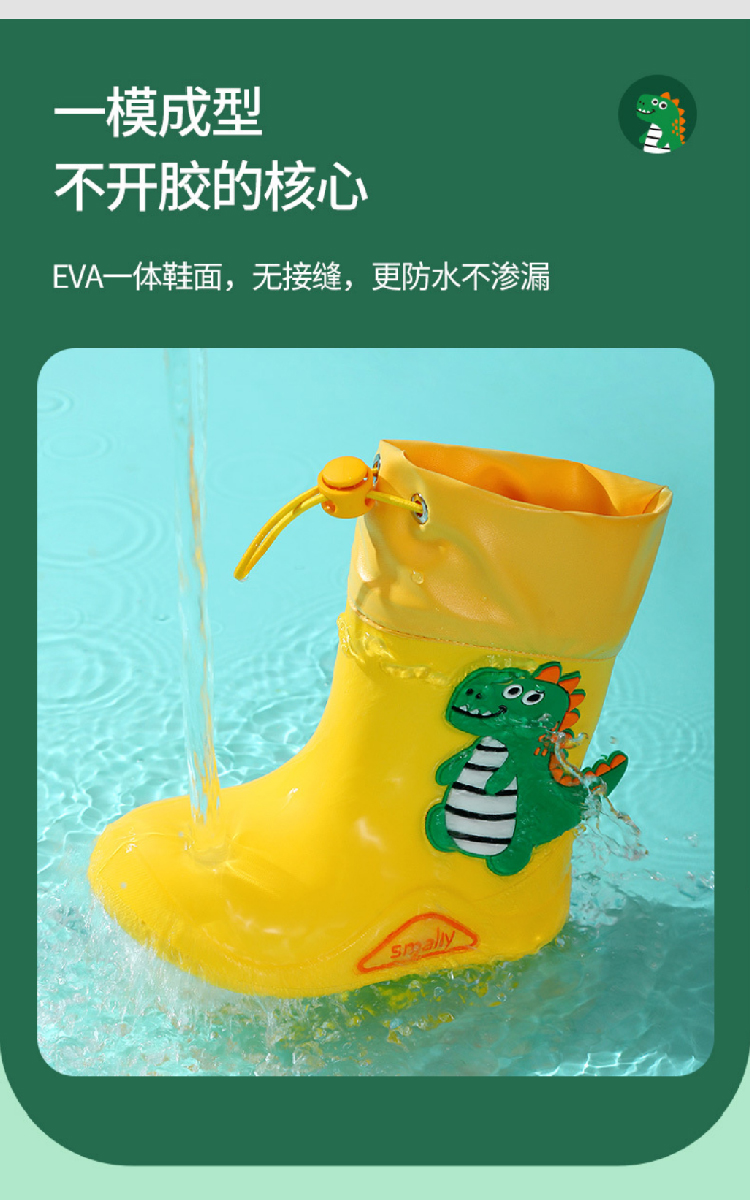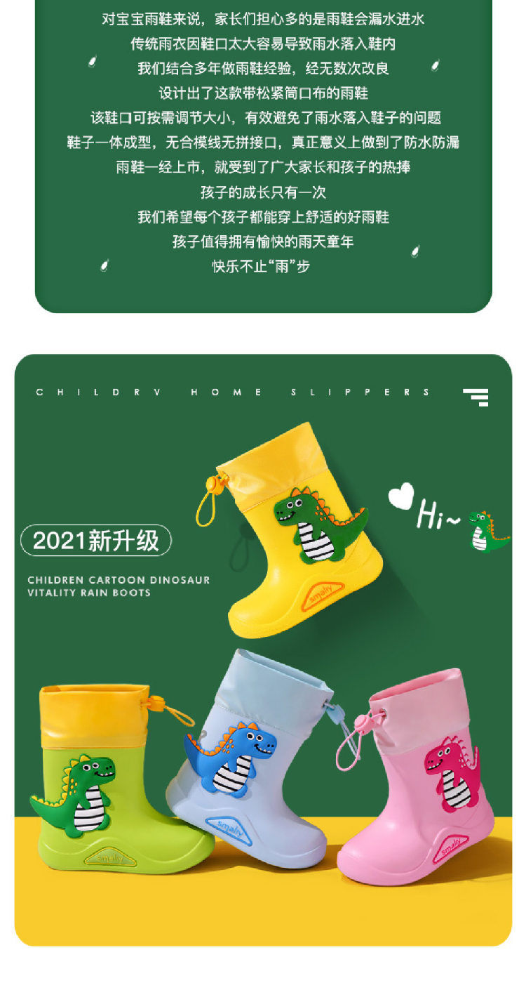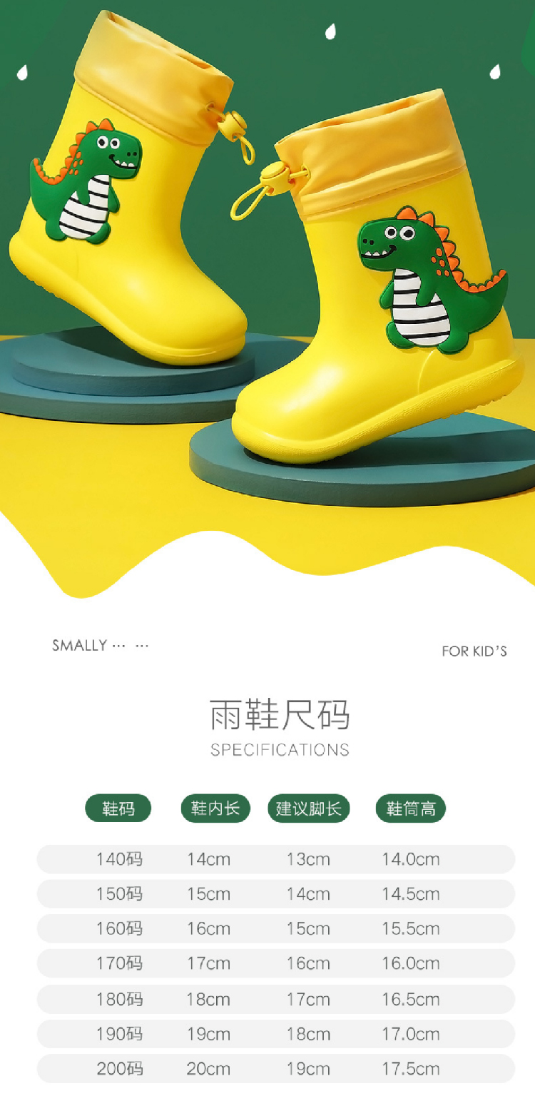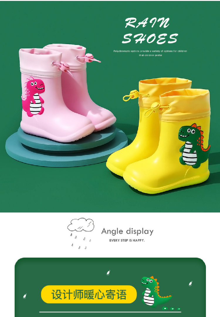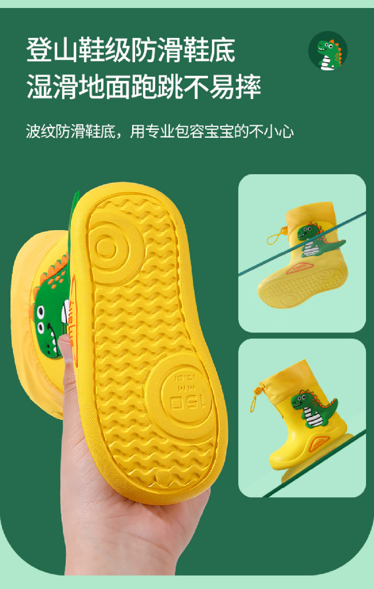 【小恐龙防滑雨鞋】新款加高儿童雨鞋宝宝防水 男女童卡通水靴幼儿束口水鞋