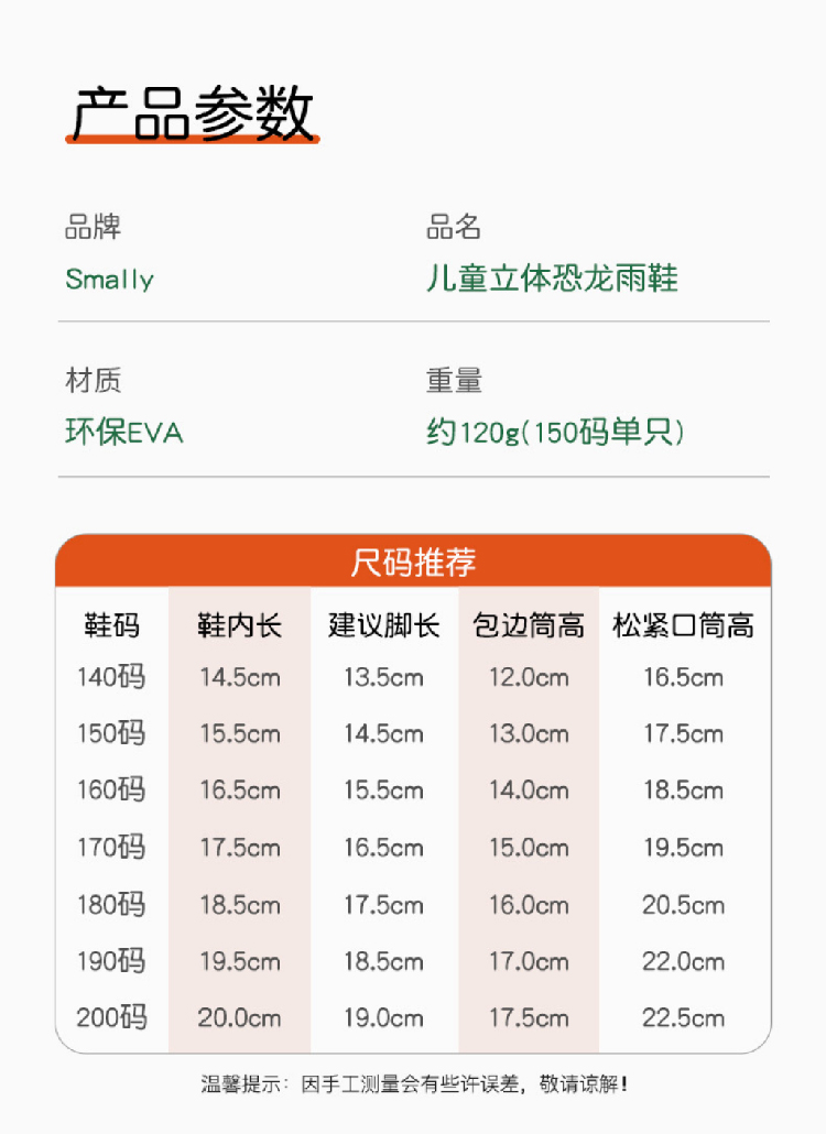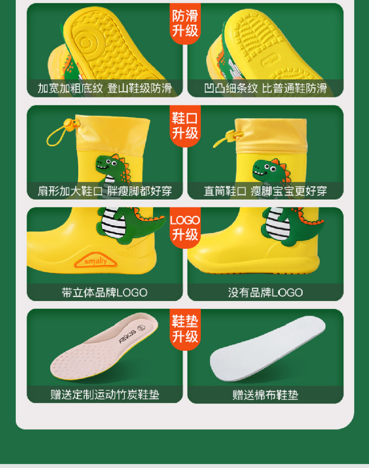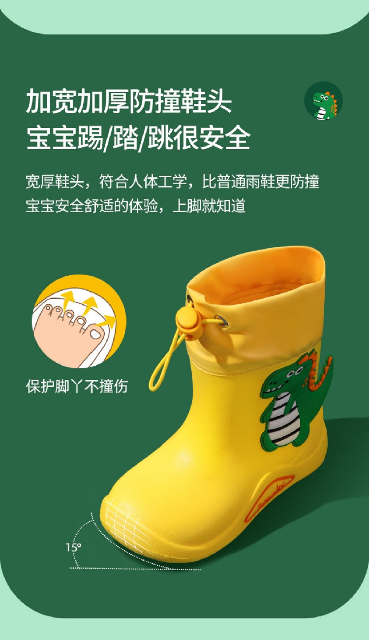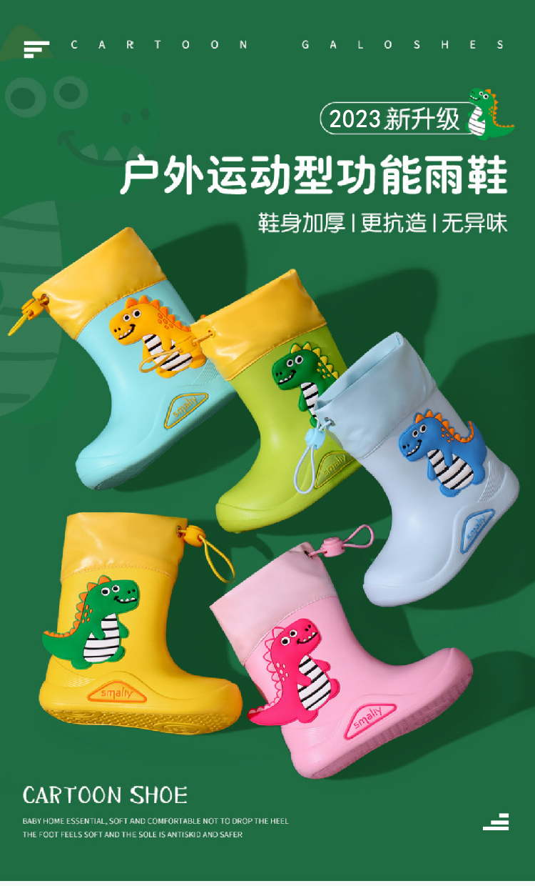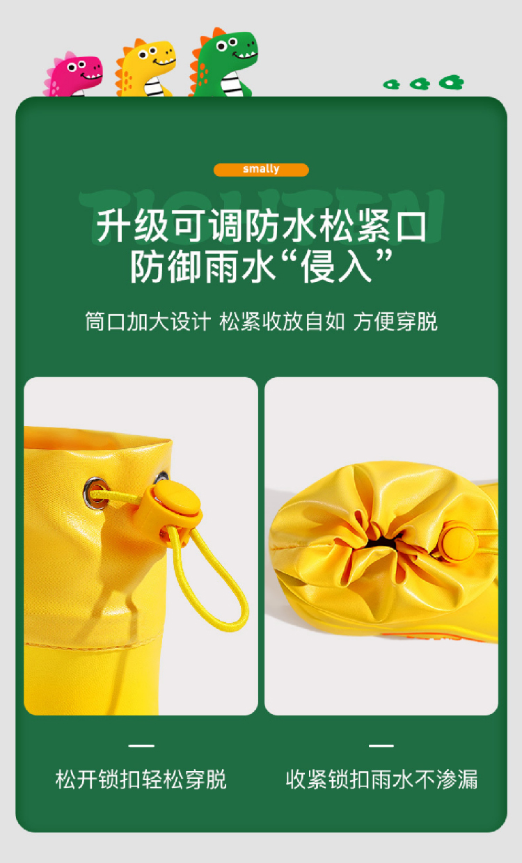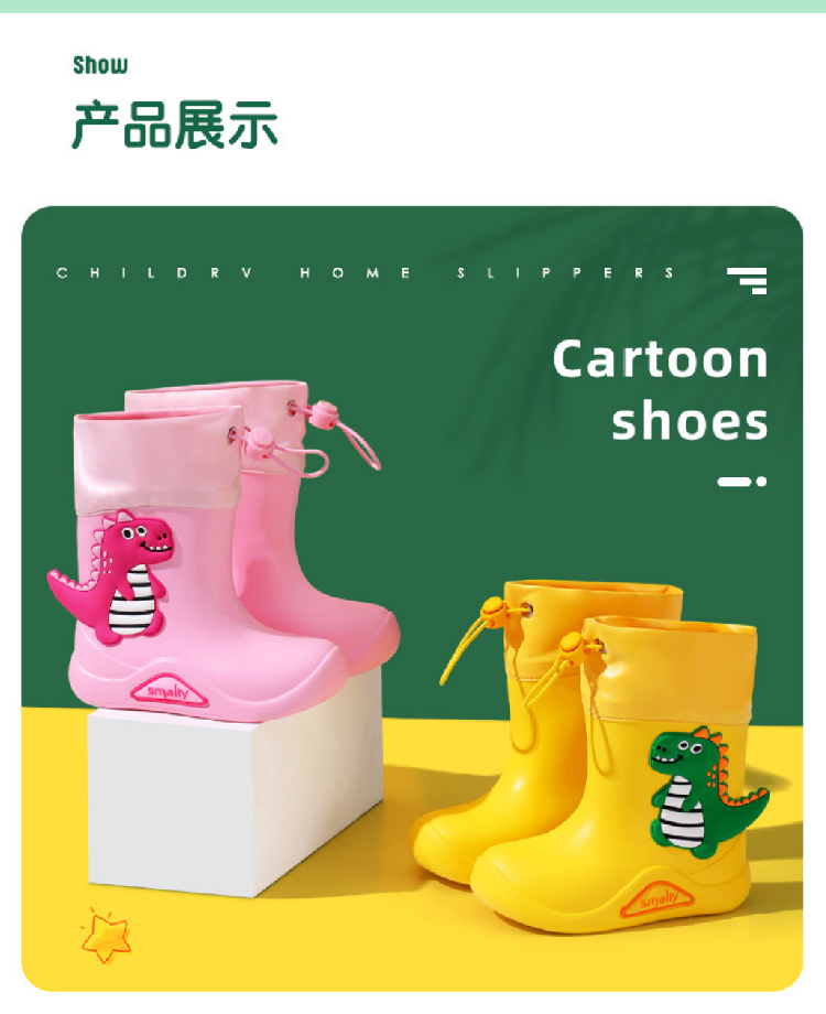 【小恐龙防滑雨鞋】新款加高儿童雨鞋宝宝防水 男女童卡通水靴幼儿束口水鞋