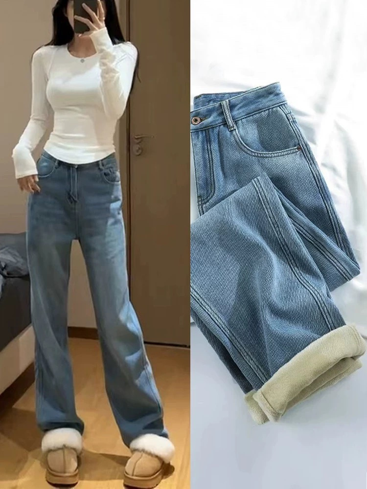 冬季保命神裤【喵小仟 高腰加绒牛仔裤】一条过冬巨好穿! 高克重加绒 新疆长绒棉包裹弹力纤维 全新升级FIT系牛仔 与环保染色强强结合