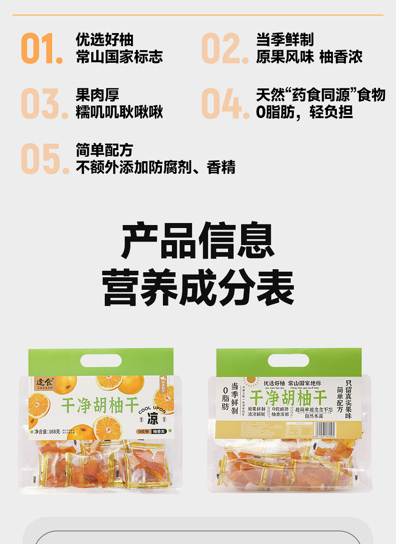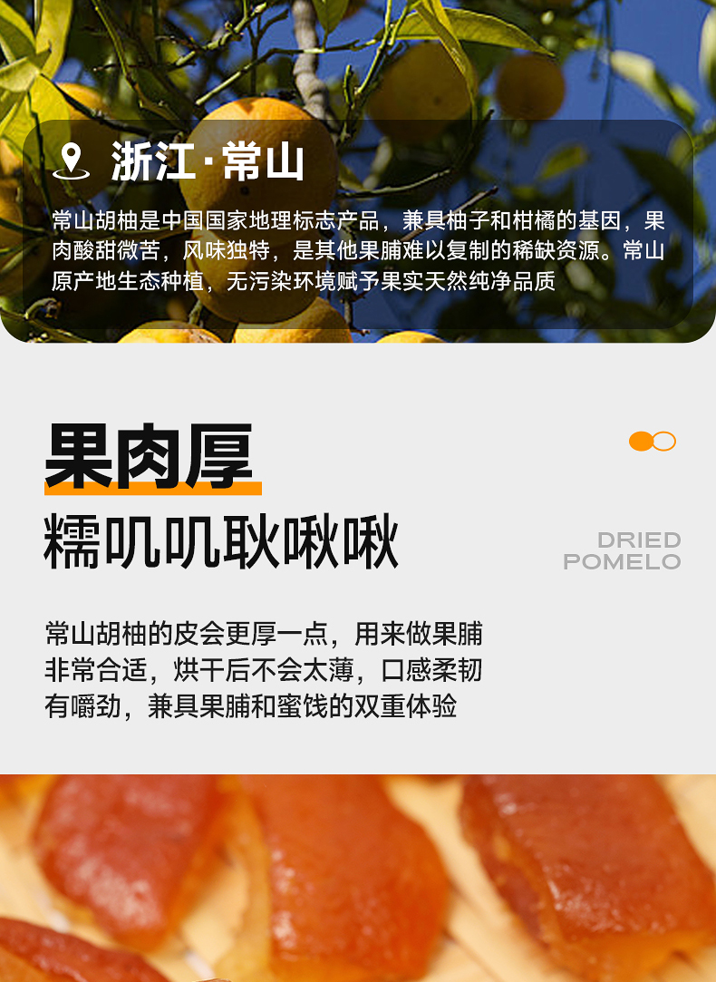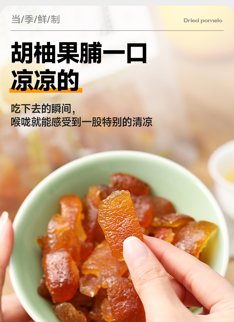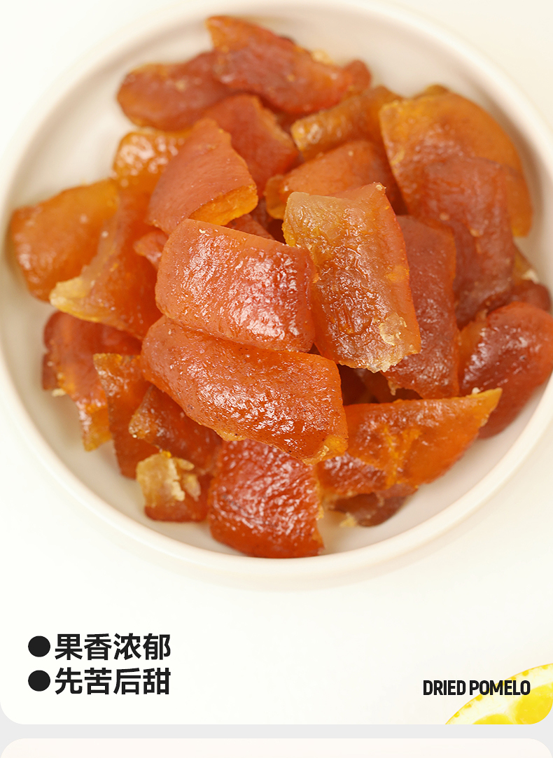 胡柚干:常山胡柚皮,白砂糖,麦芽糖