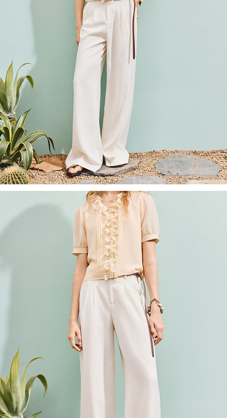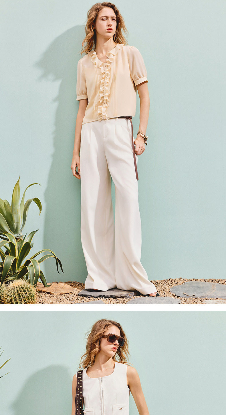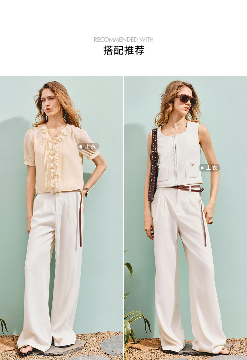 【SGPR】垂坠感收腰压褶直身休闲裤25夏通勤宽松裤子(货号:MU86TR253)