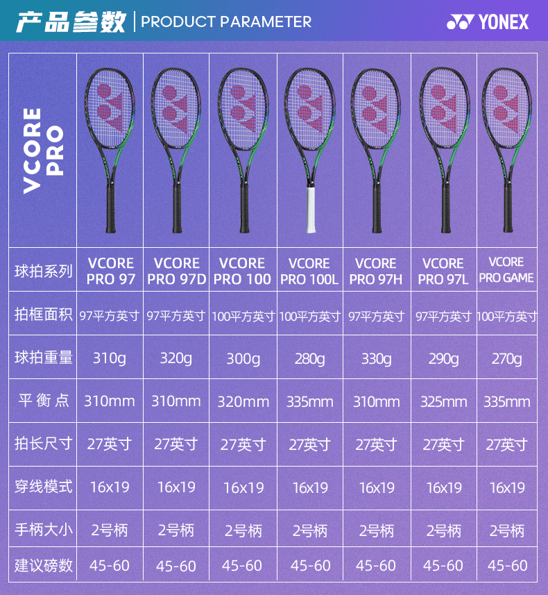 2021新款 瓦林卡 胡尔卡奇Yonex VCORE Pro 97/100 系列网球拍