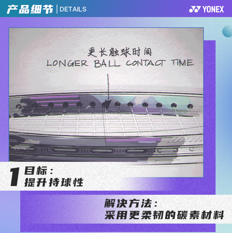 加大拍面带来出色击球力量,具有更好击球宽容性。同时球拍的出色力量表现,可以让你全场打出强力进攻。