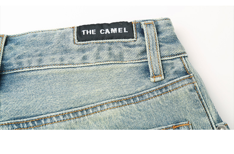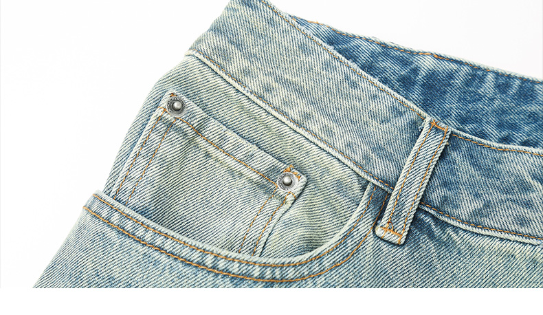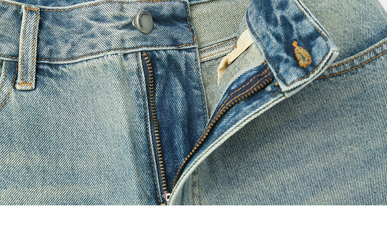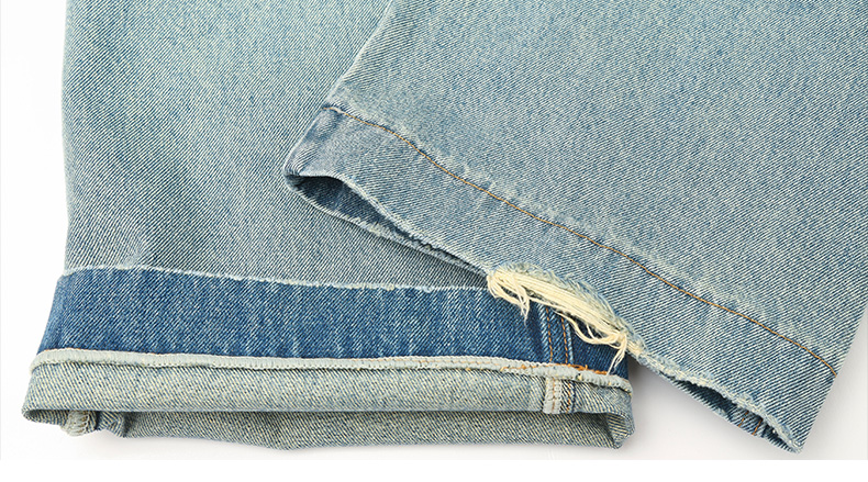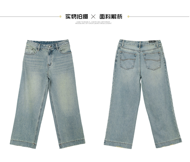 慵懒风浅蓝做旧牛仔裤 春季新款高腰宽松直筒九分裤