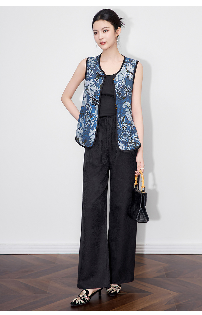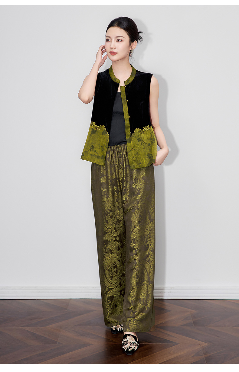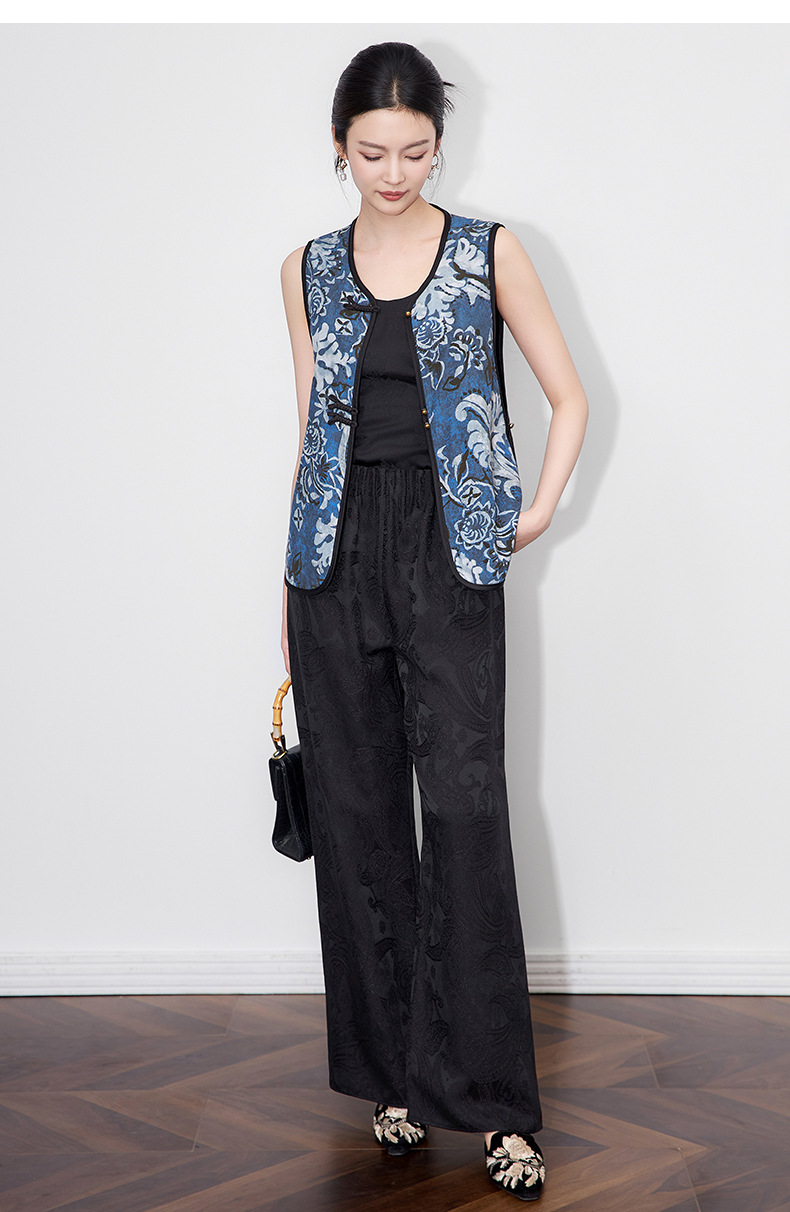 「高货wl」全新升级【铂金会员266/天猫359/差价93】(54144)洛诗琳新中式人丝提花直筒裤2025秋季国风显瘦阔腿休闲裤