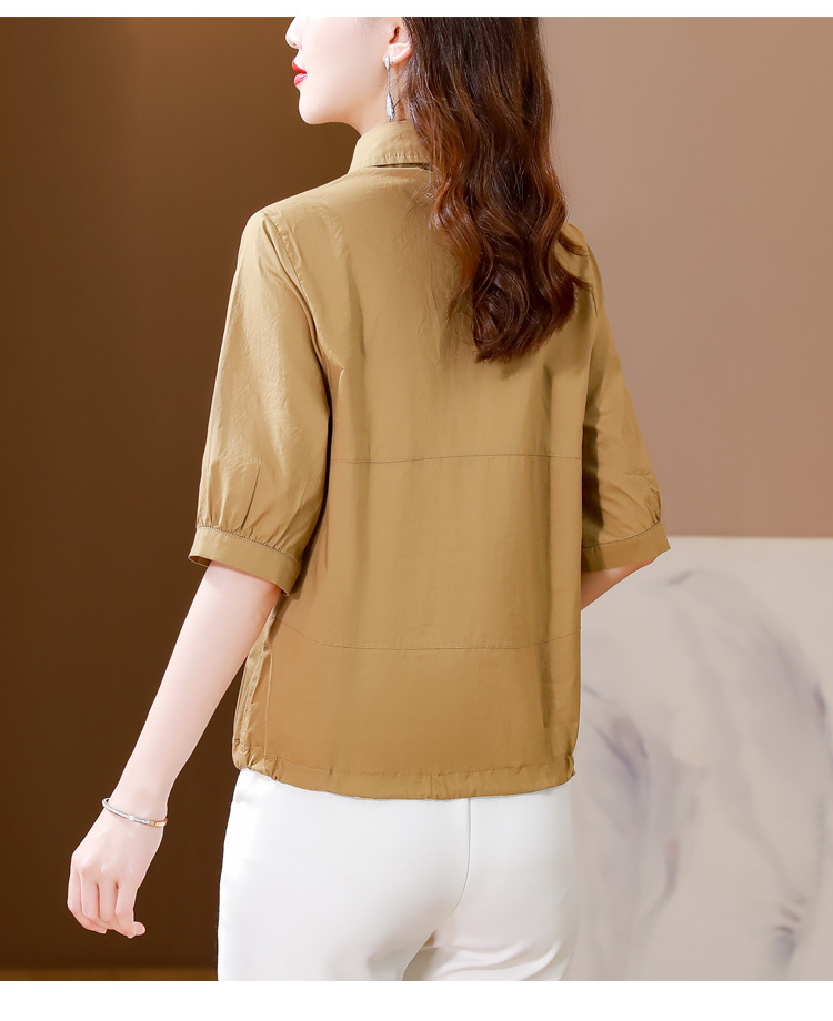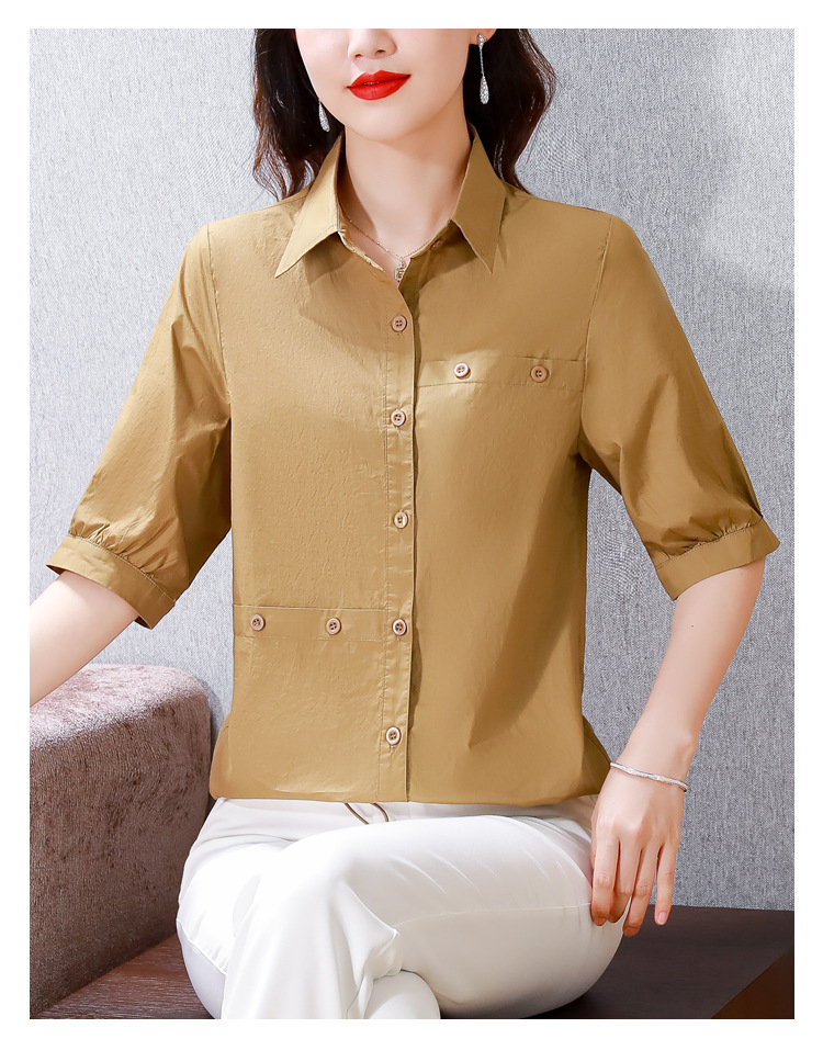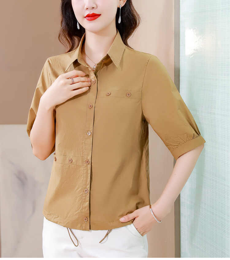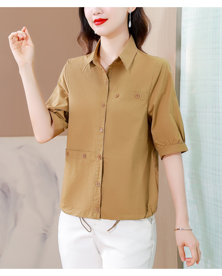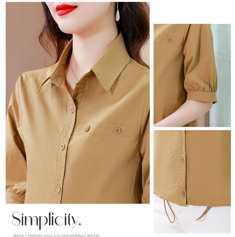SMZ7245 2023夏季新款衬衣女短袖单排扣纯色衬衫简约通勤气质上衣职业小衫