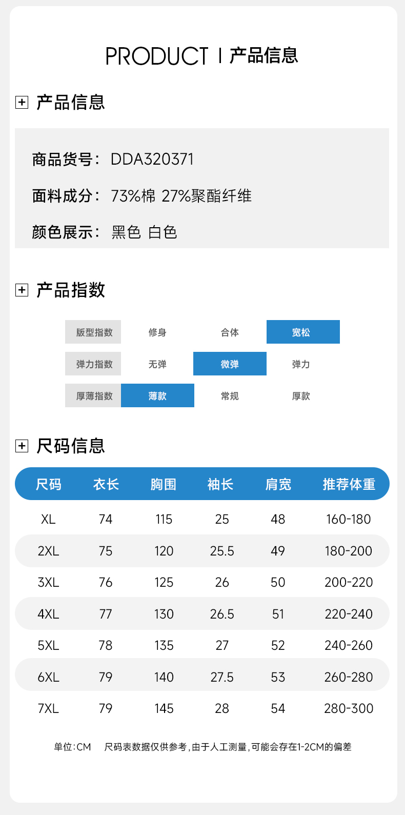 【新款DDA】大依优型大码男装鸡心领V领短袖T恤加肥加大透气吸汗夏季上衣半袖
