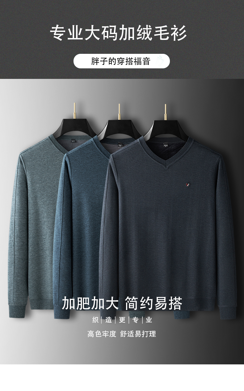 【加绒】【绵羊毛】【新款DDS】大依优型大码男装V领毛衫线衣针织衫休闲加肥加大男士胖子大码内搭上衣毛衣
