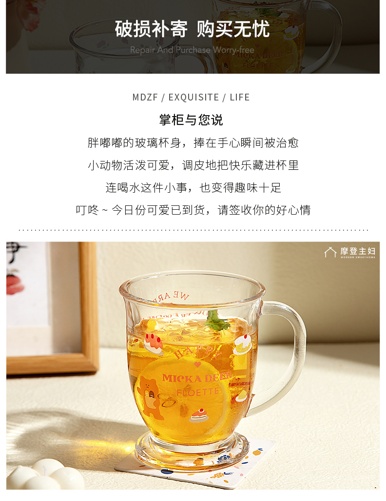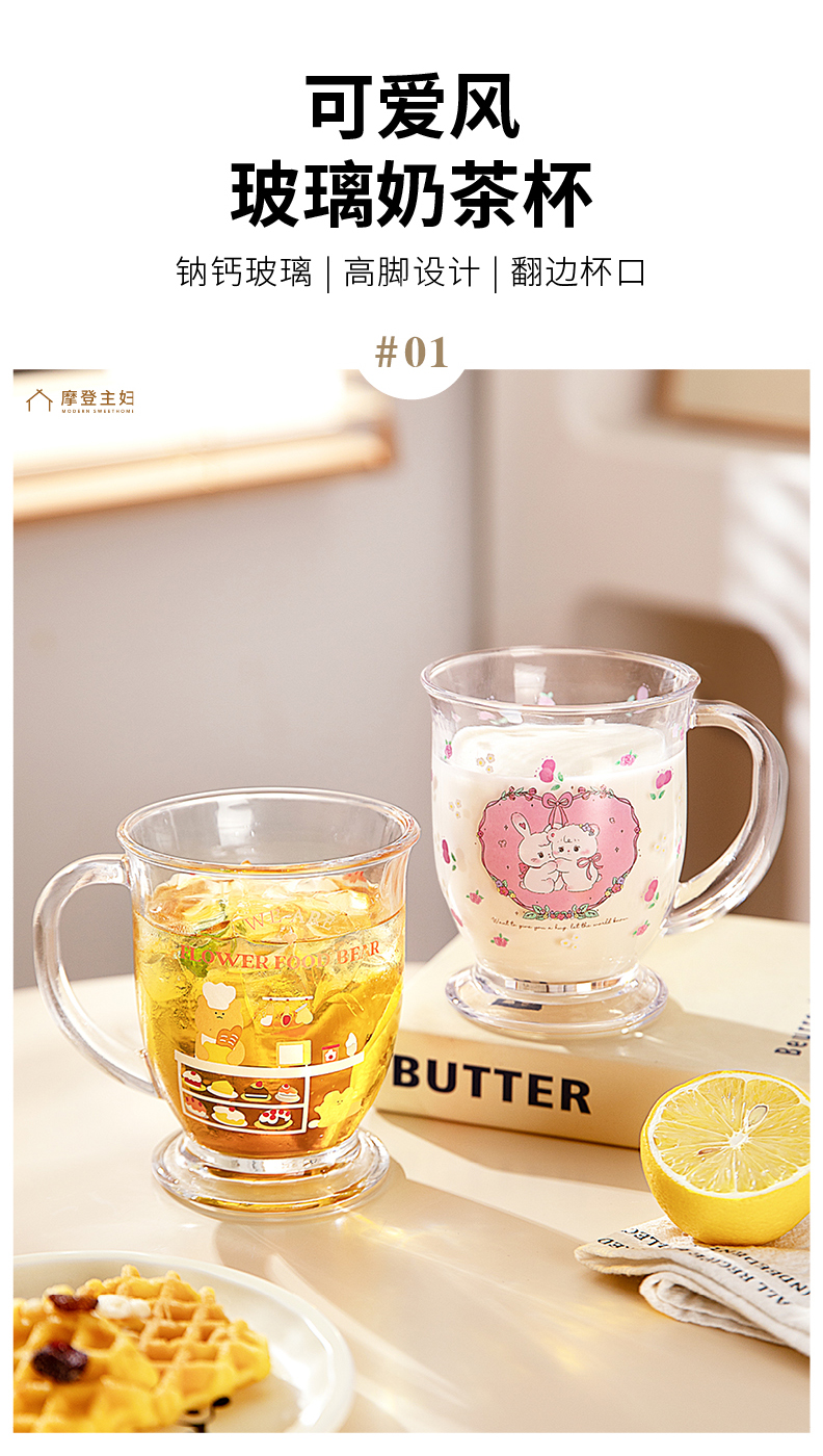 摩登主妇玻璃杯高脚杯高颜值水杯女2025新款果汁杯咖啡杯奶茶杯子