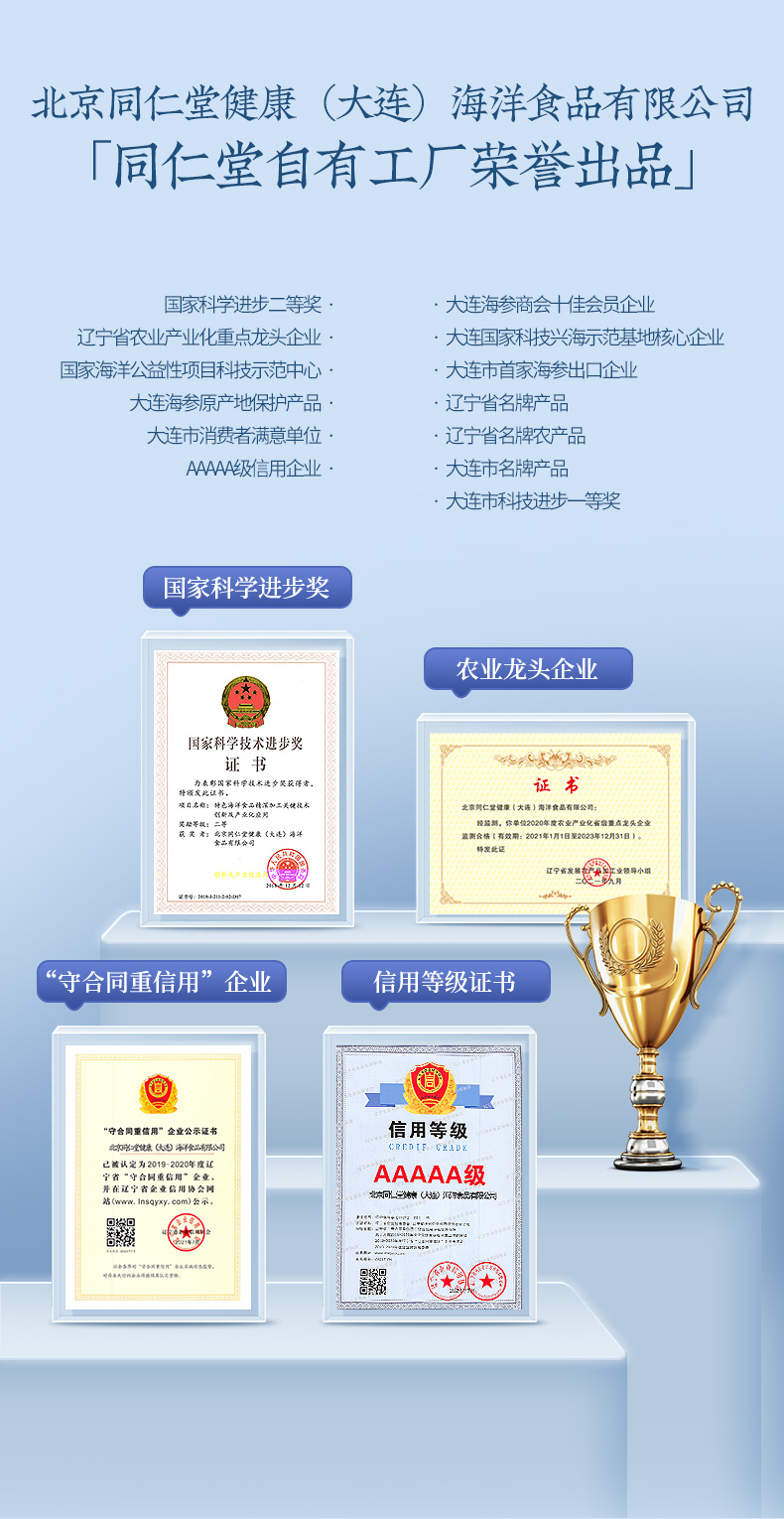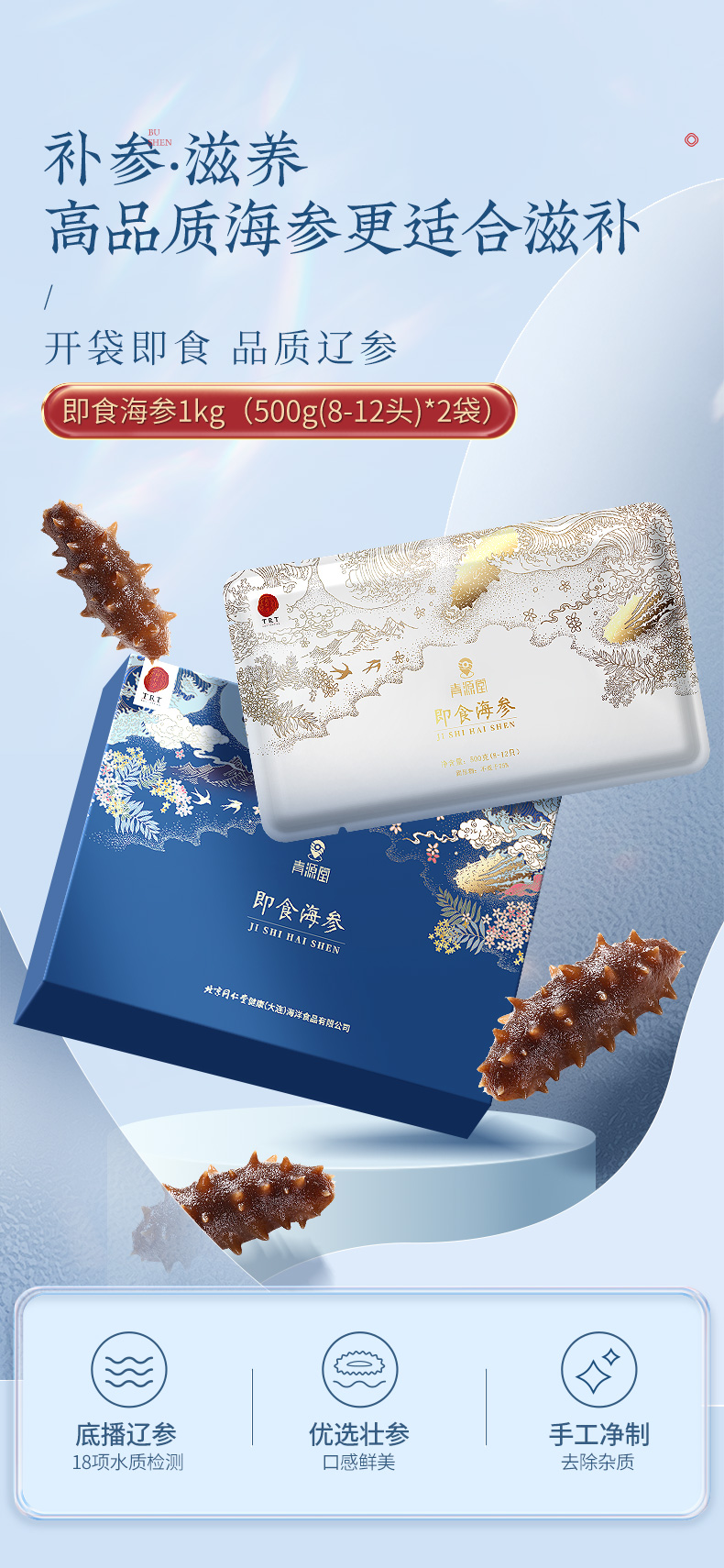 【正宗同仁堂品牌】北京同仁堂 青源堂 即食海参1000克 足年壮参 营养富足SY