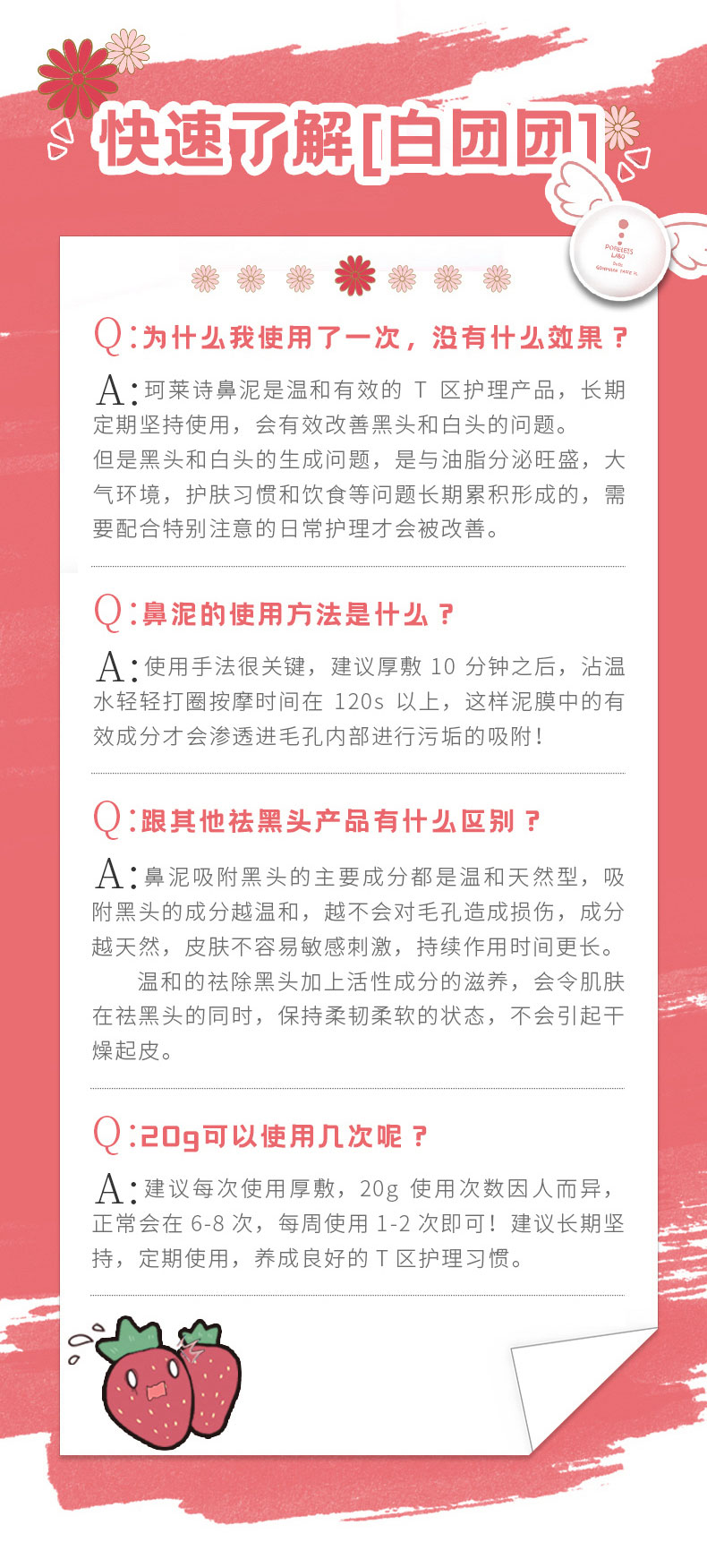 功效:去除毛孔污垢、促进肌肤新陈代谢、清除黑头