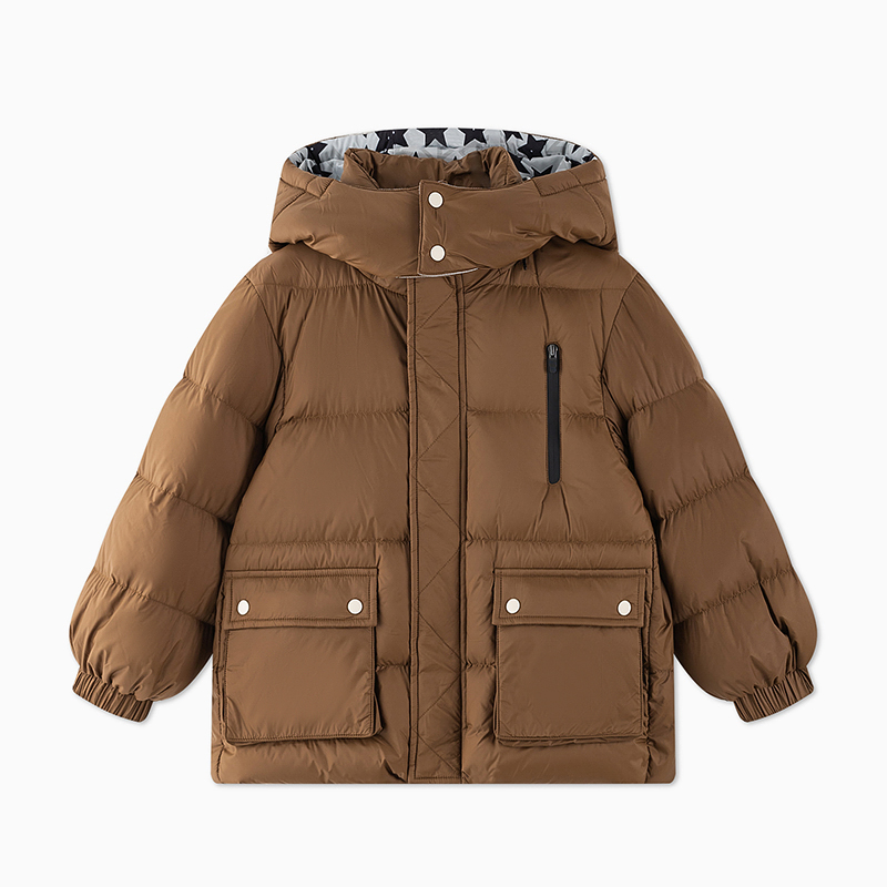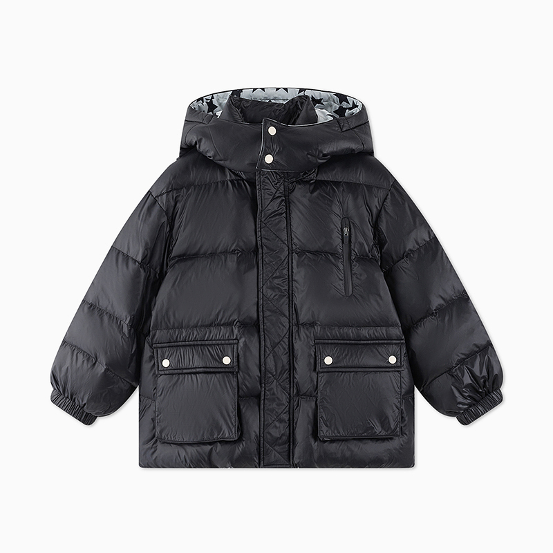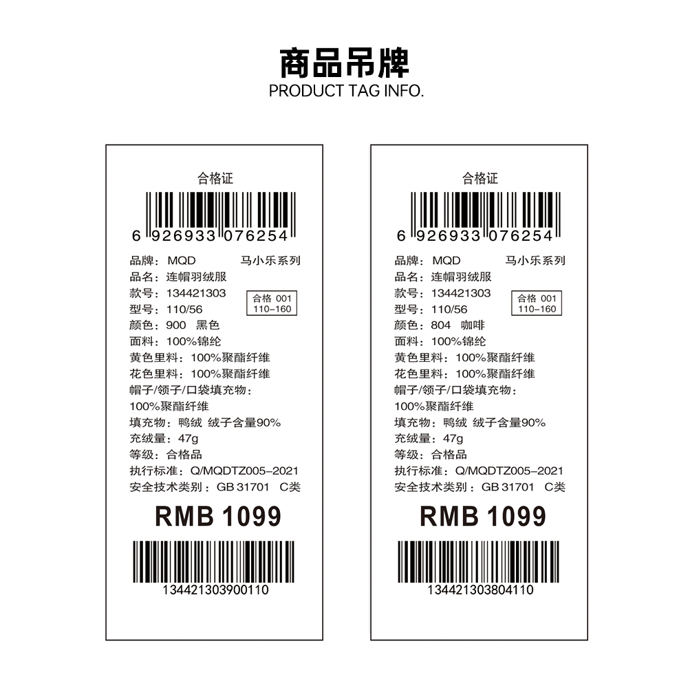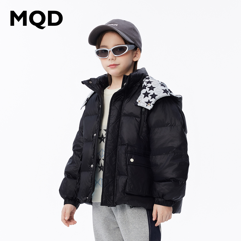 【秒1】【MQD】男童柔软舒适冬季满版拼接撞色连帽羽绒服