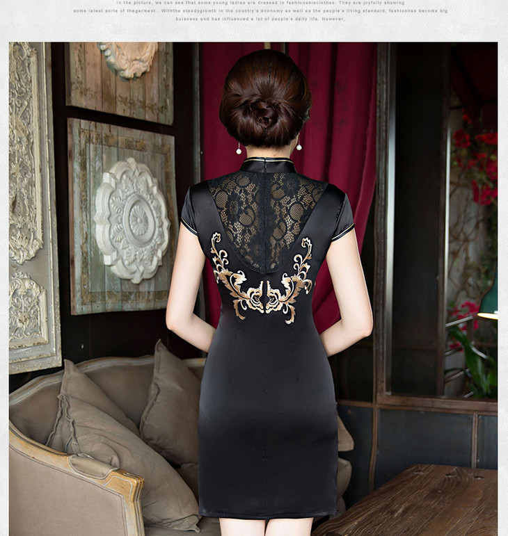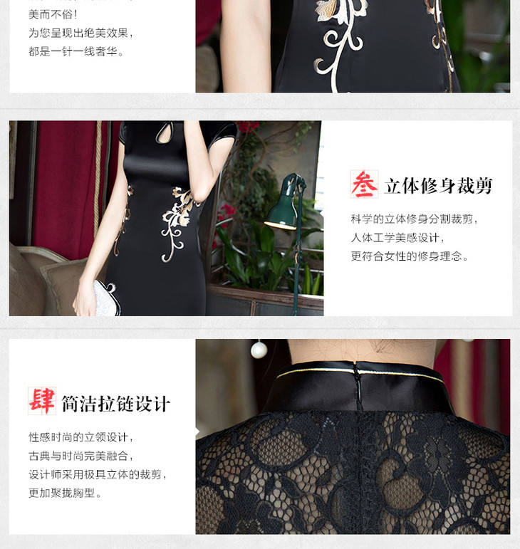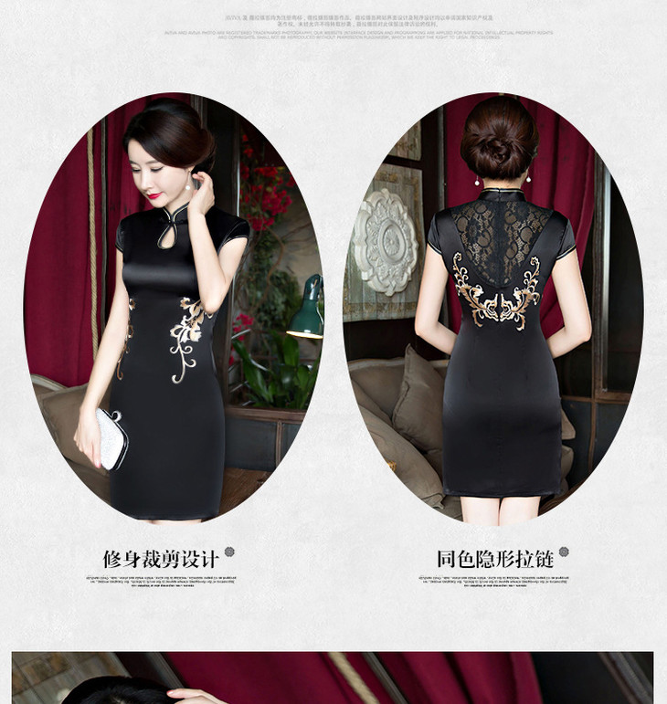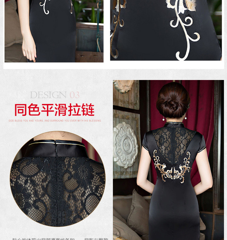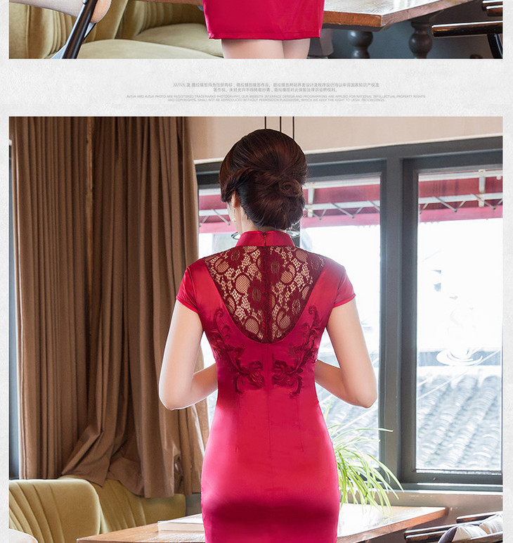 改良低开衩,蕾丝绣花露背旗袍GSJ-F100-1