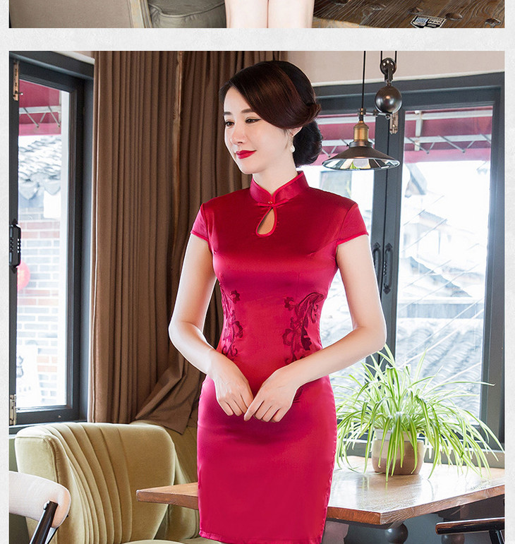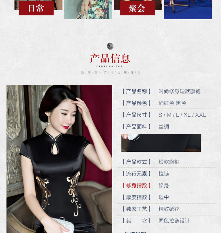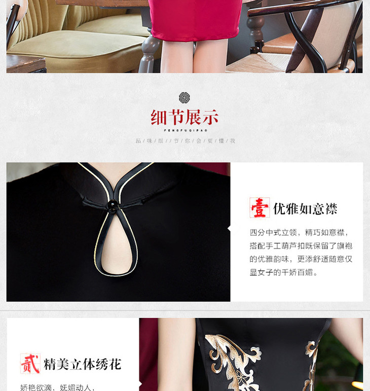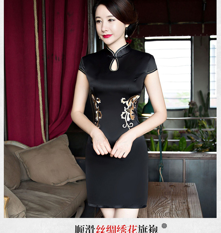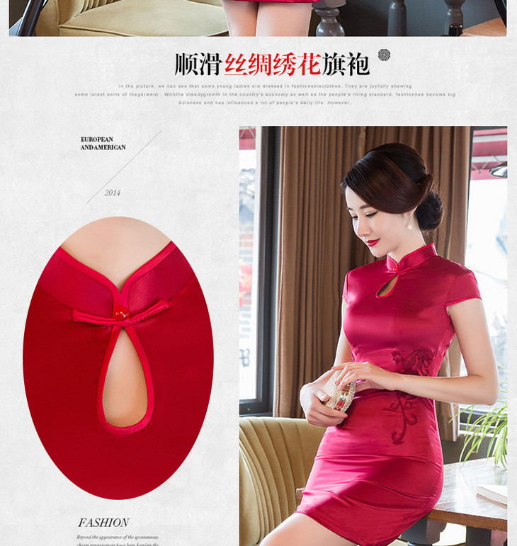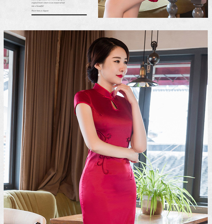 改良低开衩,蕾丝绣花露背旗袍GSJ-F100-1