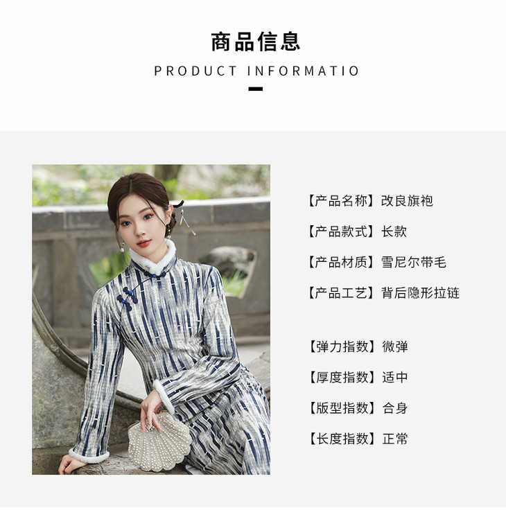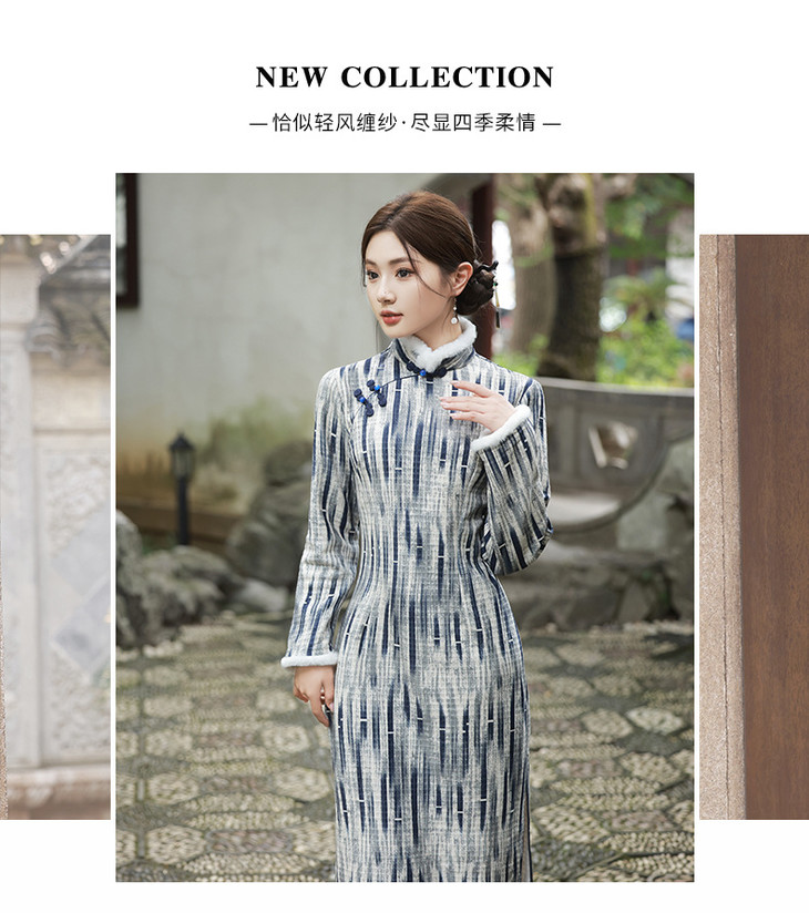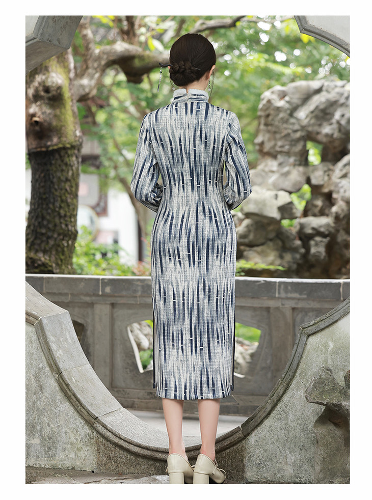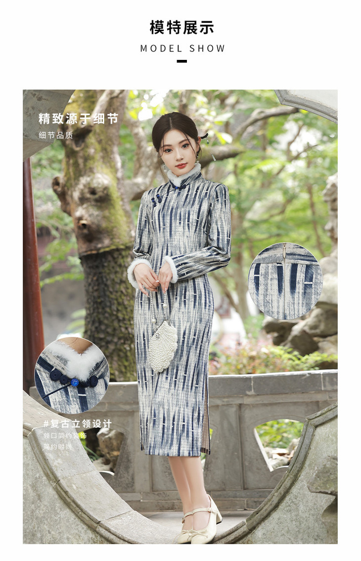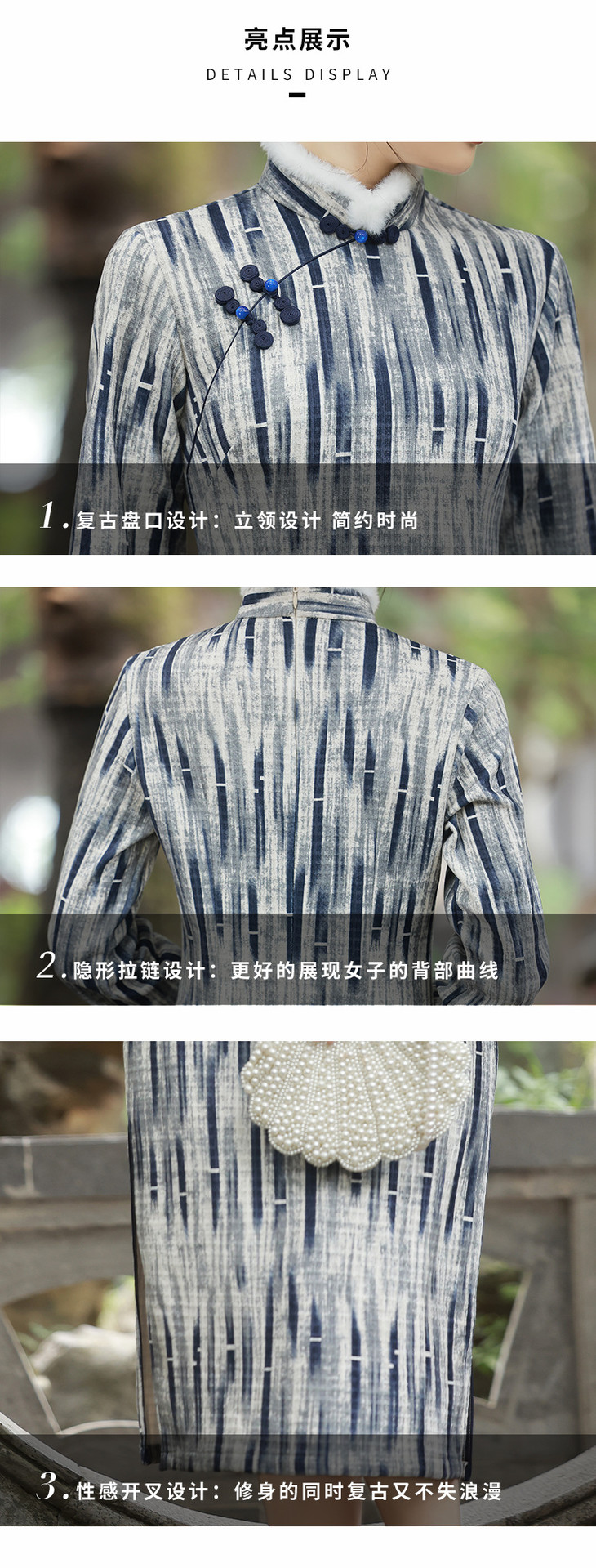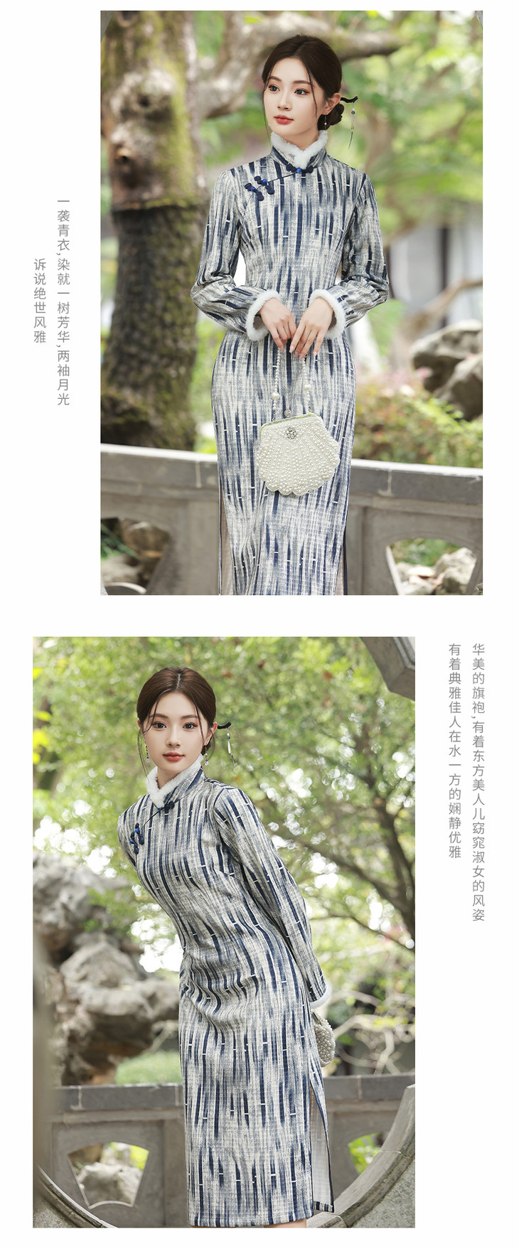 小清新蓝色长袖旗袍冬季新款复古国风新中式YG2320