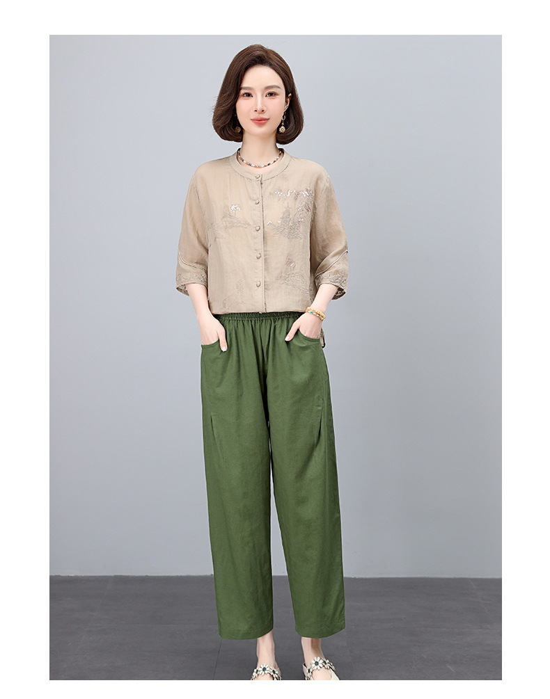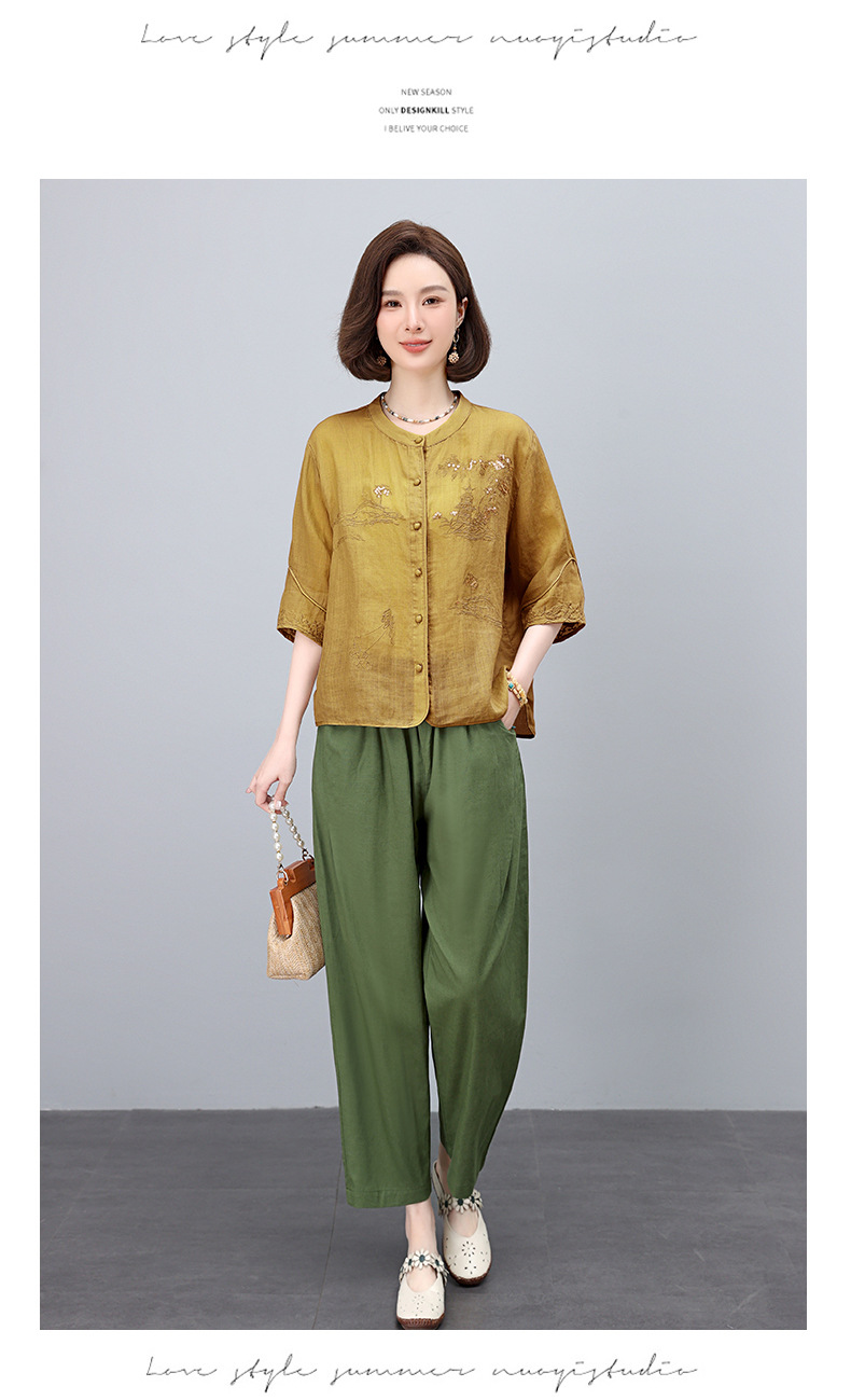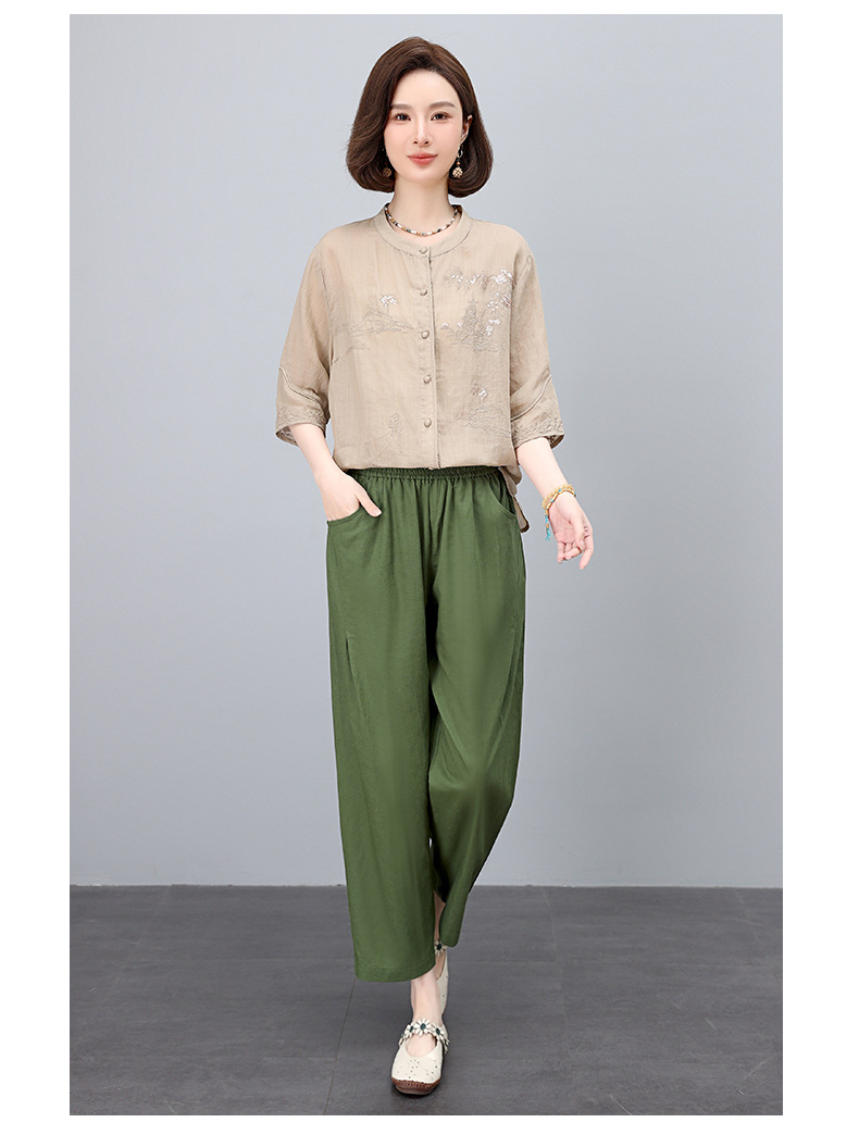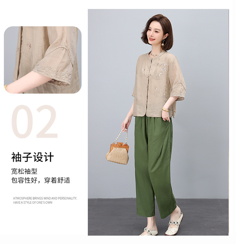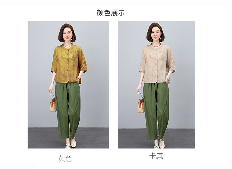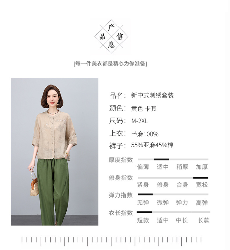 高端面料,刺绣纯苎麻妈妈两套装NJL2609