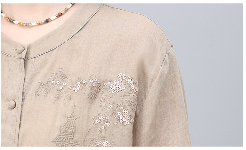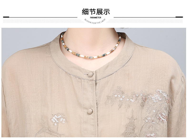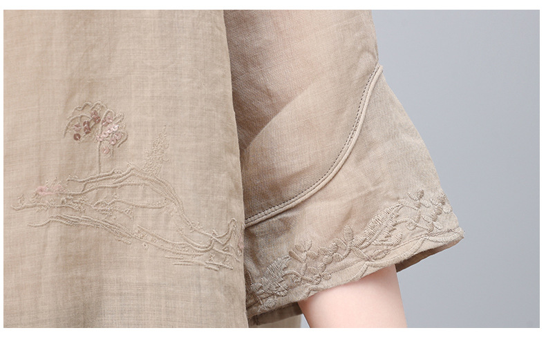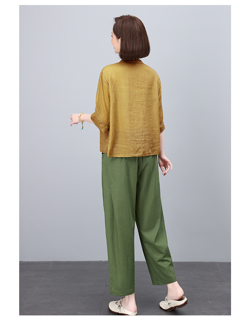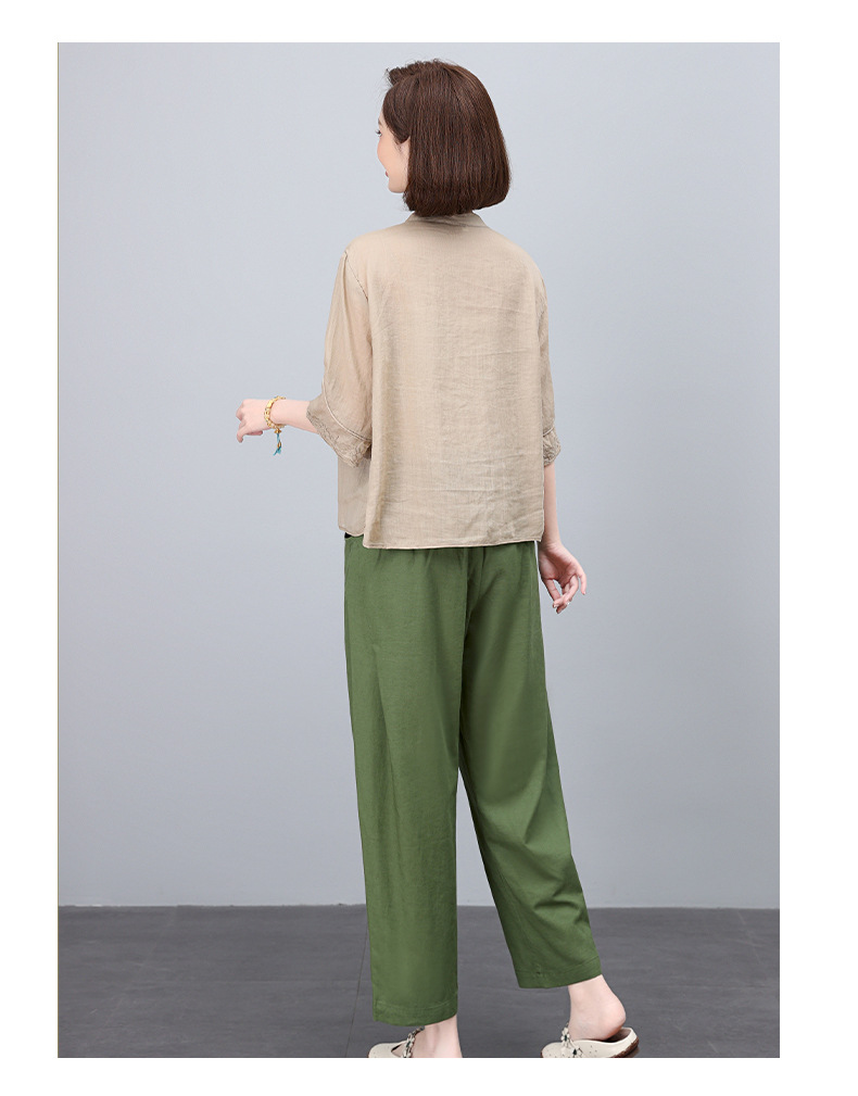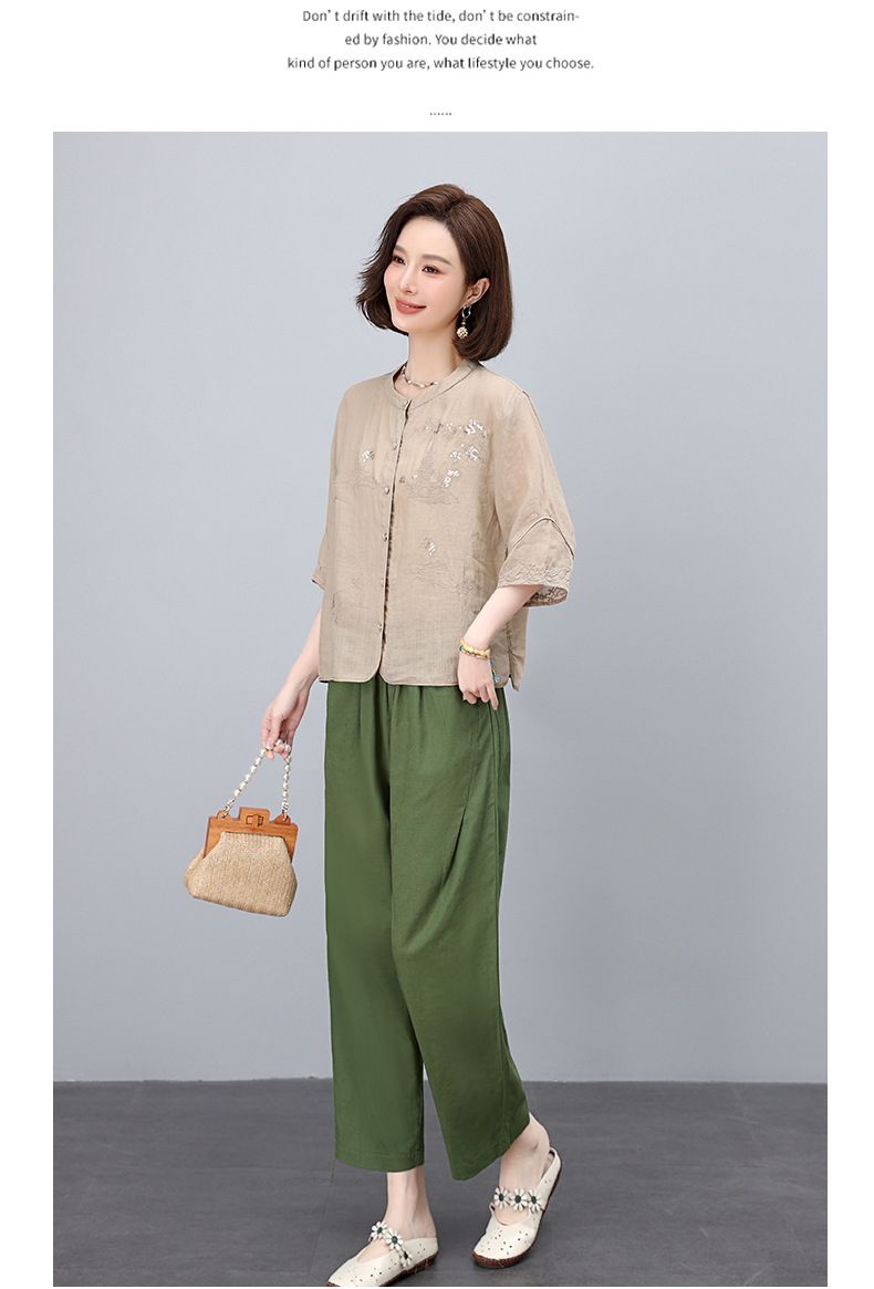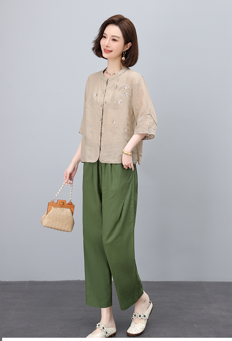 高端面料,刺绣纯苎麻妈妈两套装NJL2609