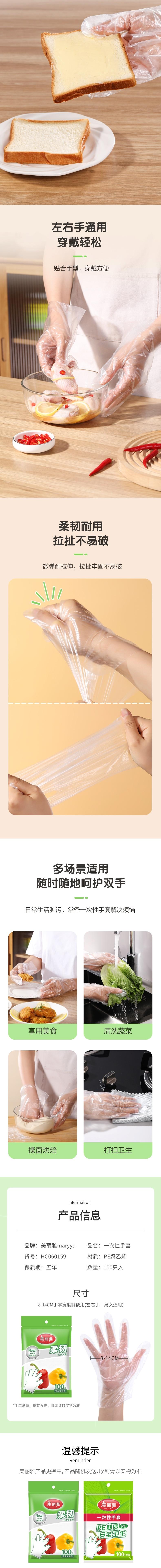 美丽雅 一次性手套100只*2 HC60159