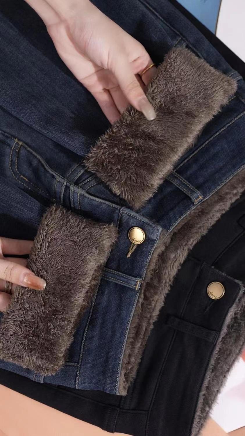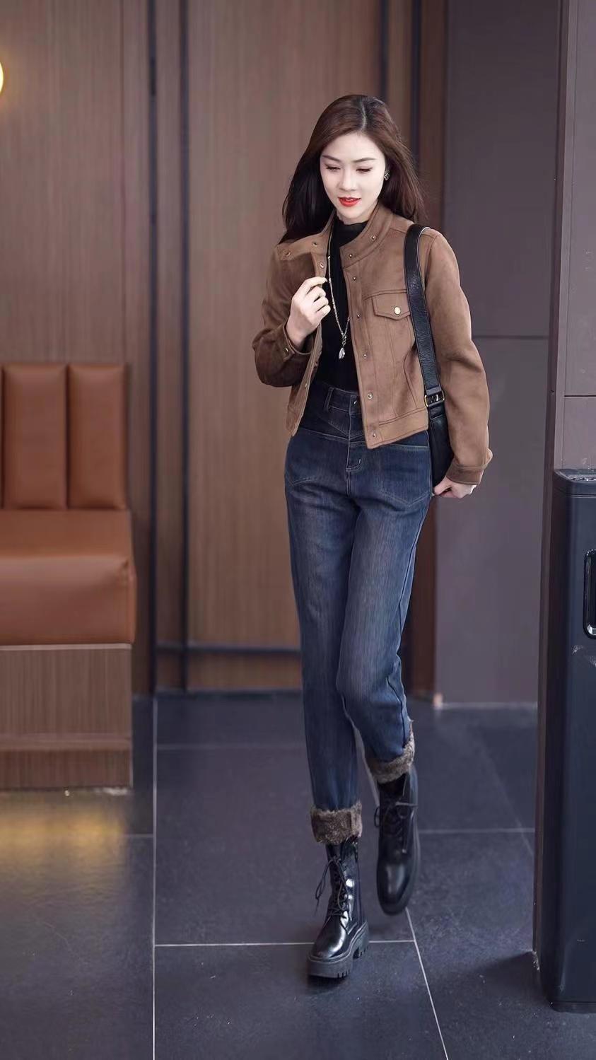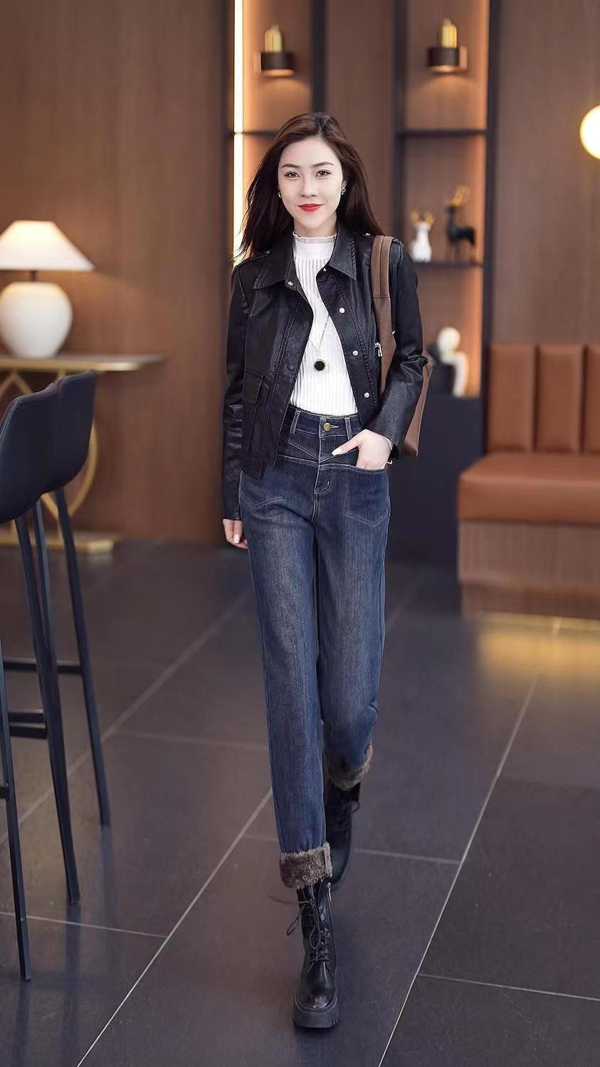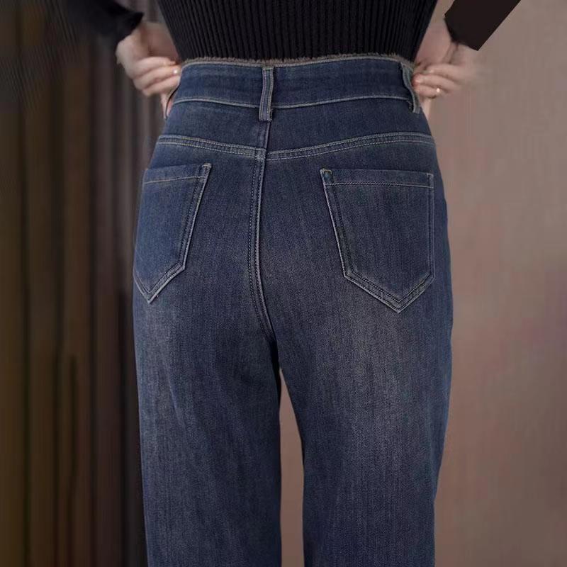 雀说加绒加厚牛仔裤女士新款小个子弹力直筒小脚烟管裤AL999