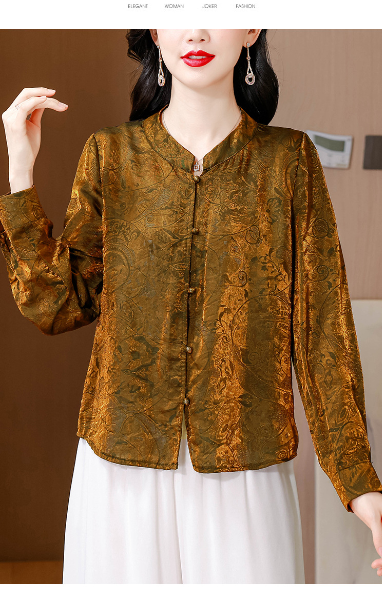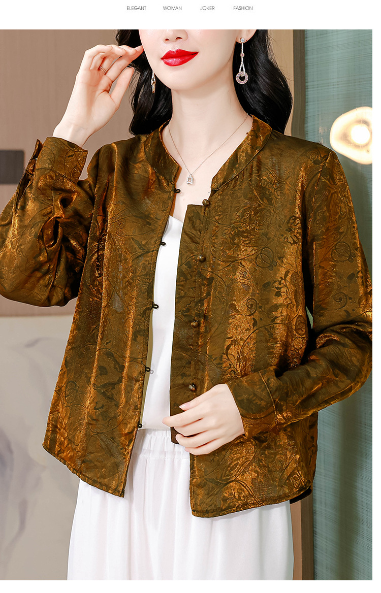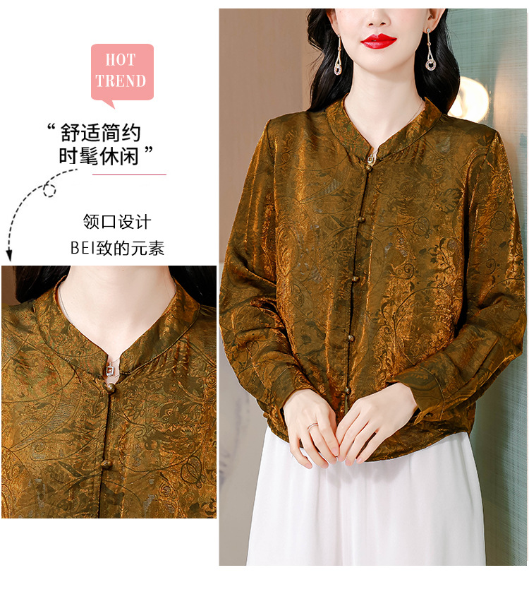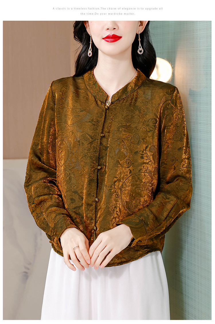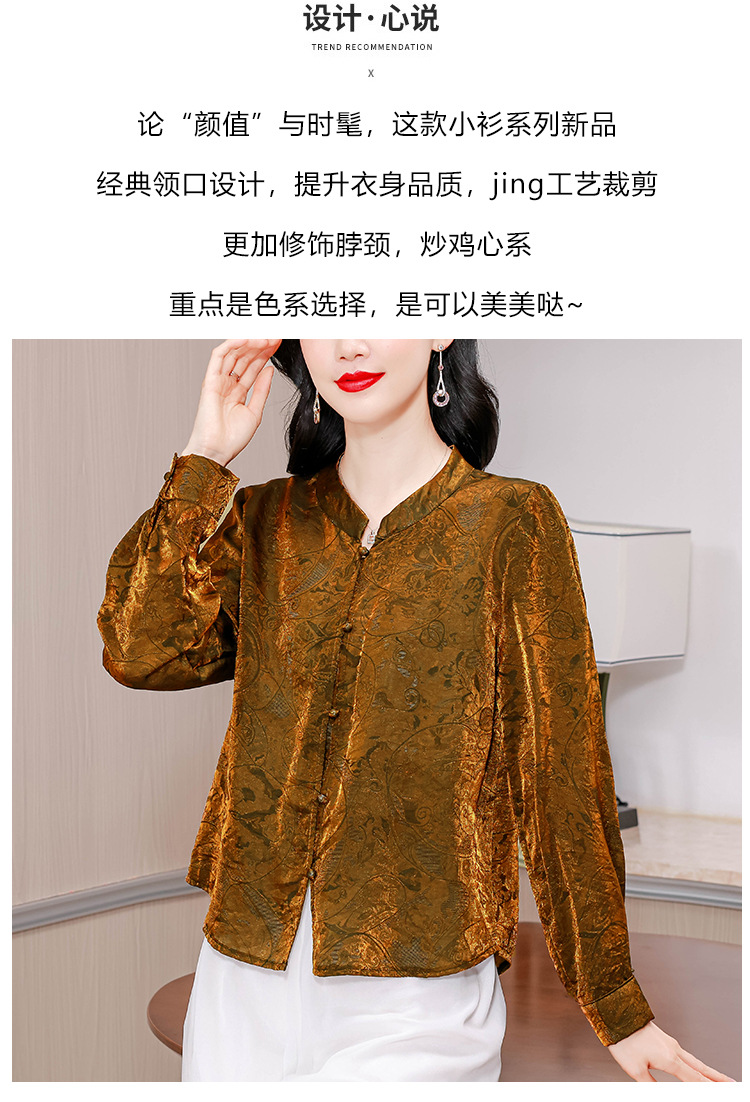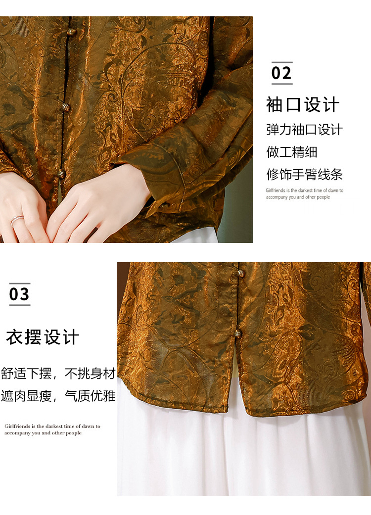 KQL A83N3182气质松弛感衬衫复古新中式国风提花外套