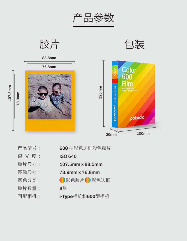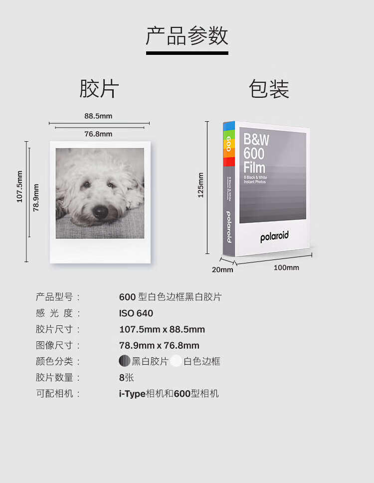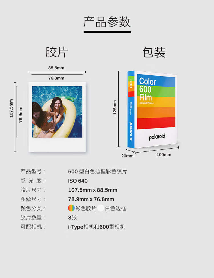 宝丽来(Polaroid)600型胶片 适用于600型相机、i-Type相机和NOW系列相机