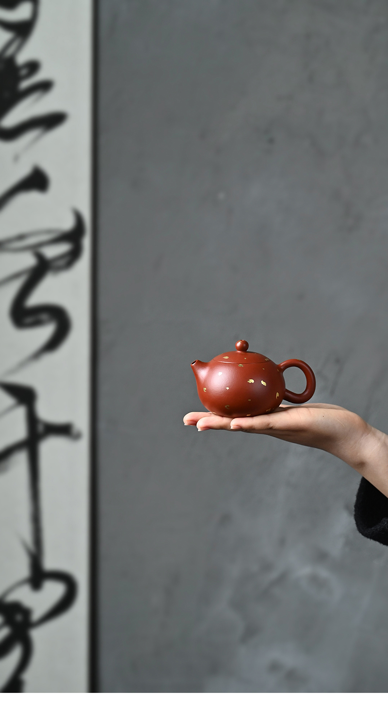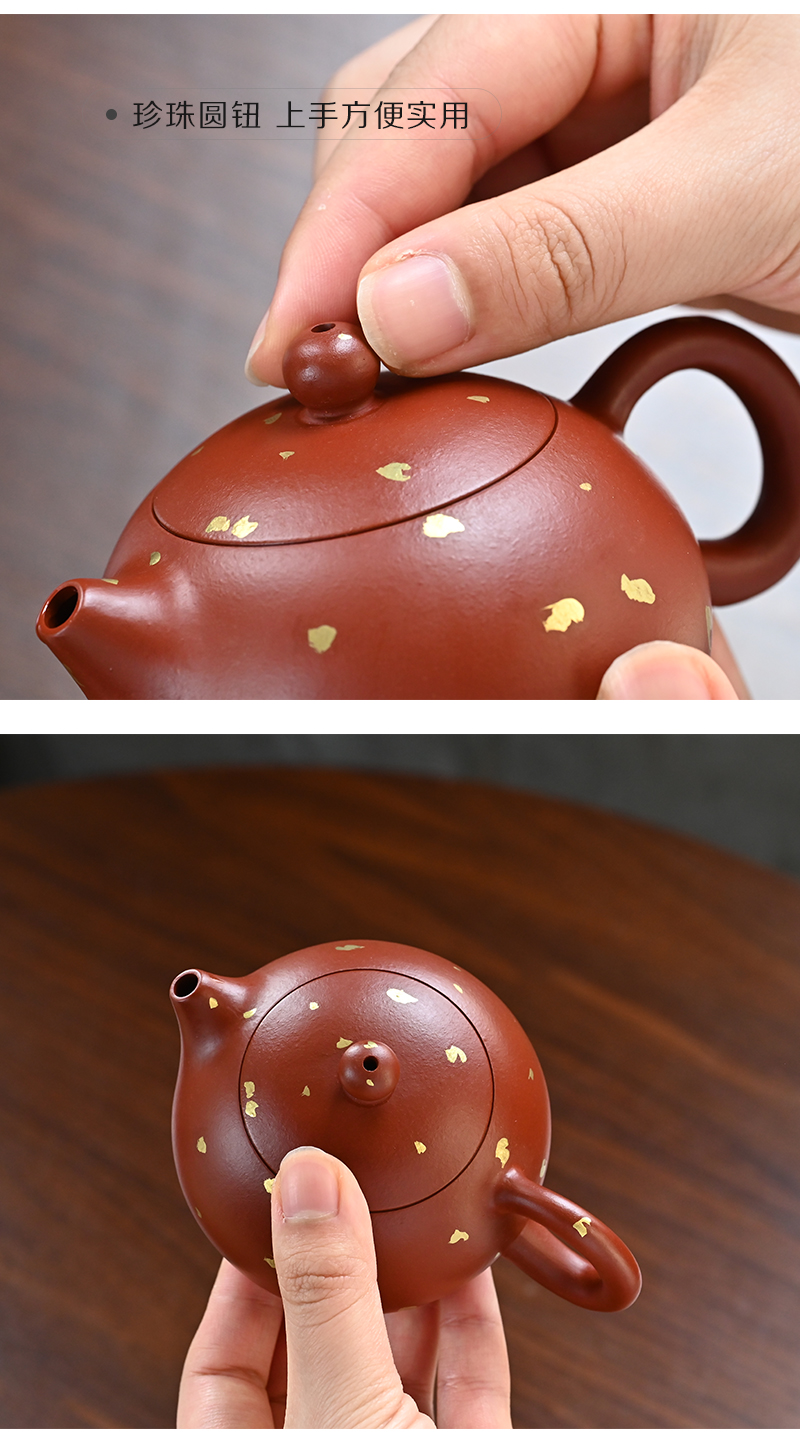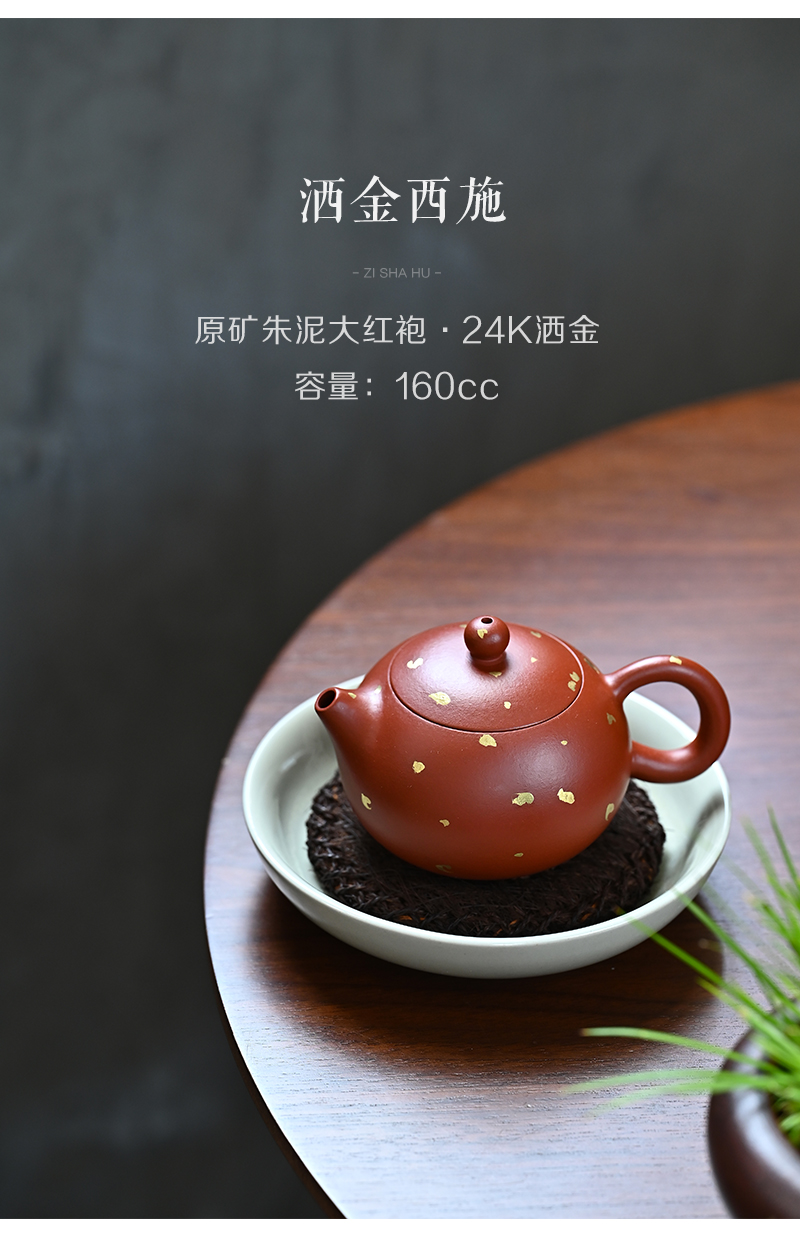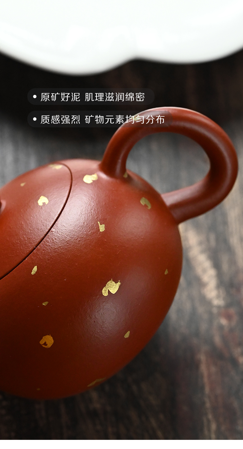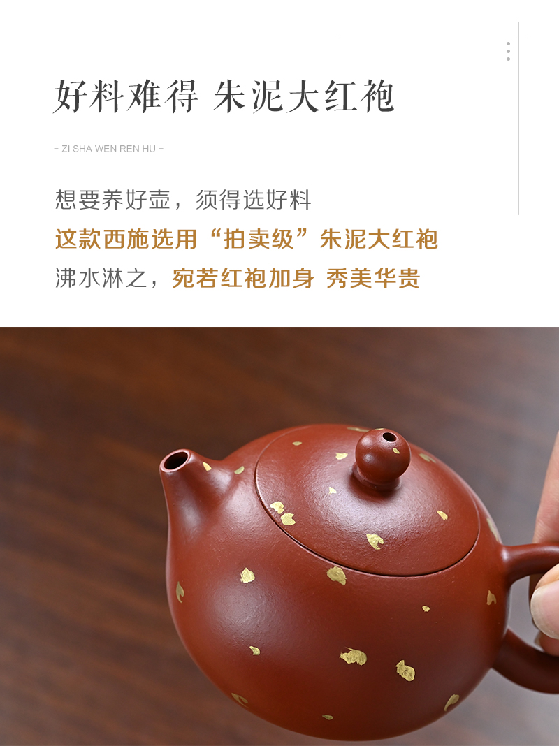 中秋有礼!朱泥大红袍洒金系列 『西施』宜兴原矿紫砂壶 收藏紫砂艺术品 160cc