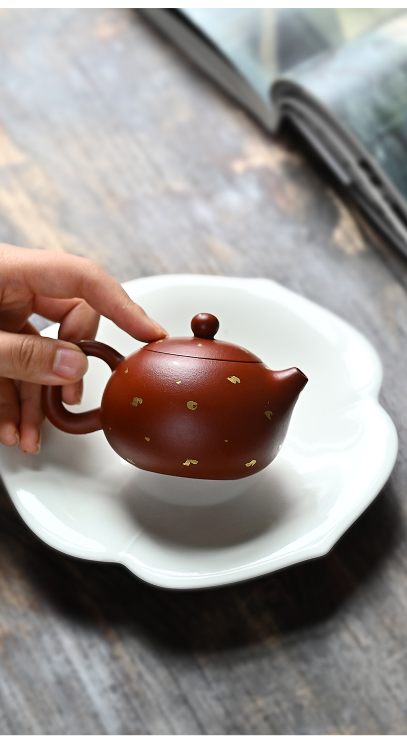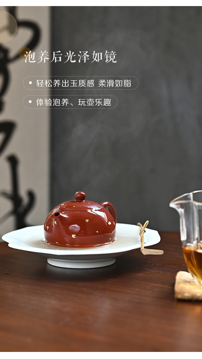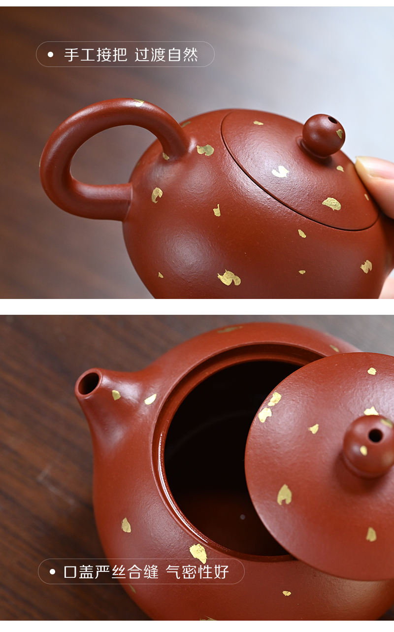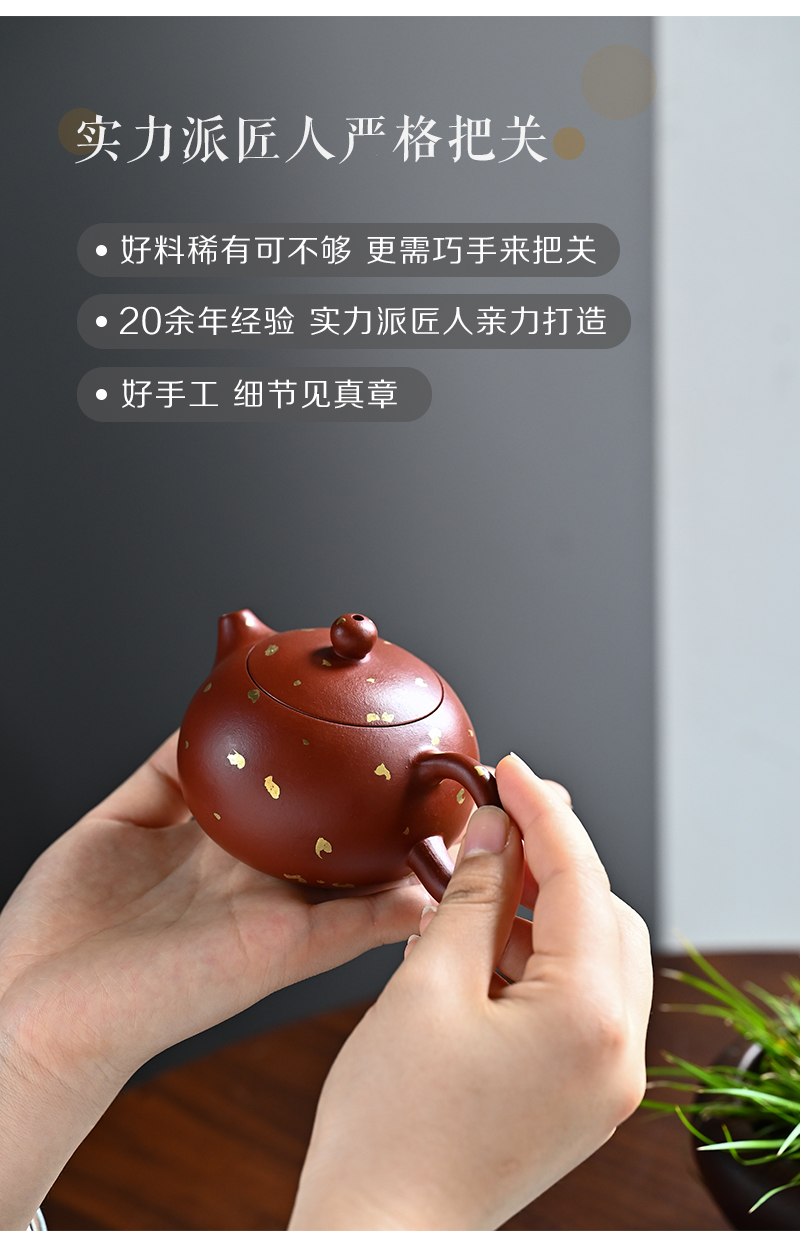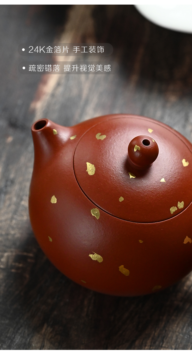 中秋有礼!朱泥大红袍洒金系列 『西施』宜兴原矿紫砂壶 收藏紫砂艺术品 160cc