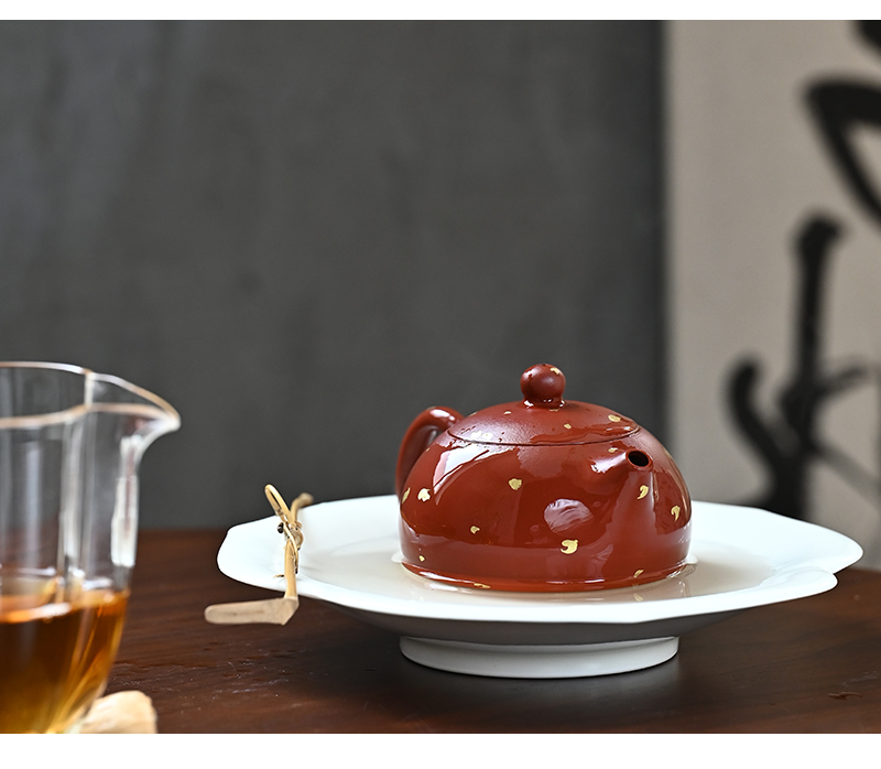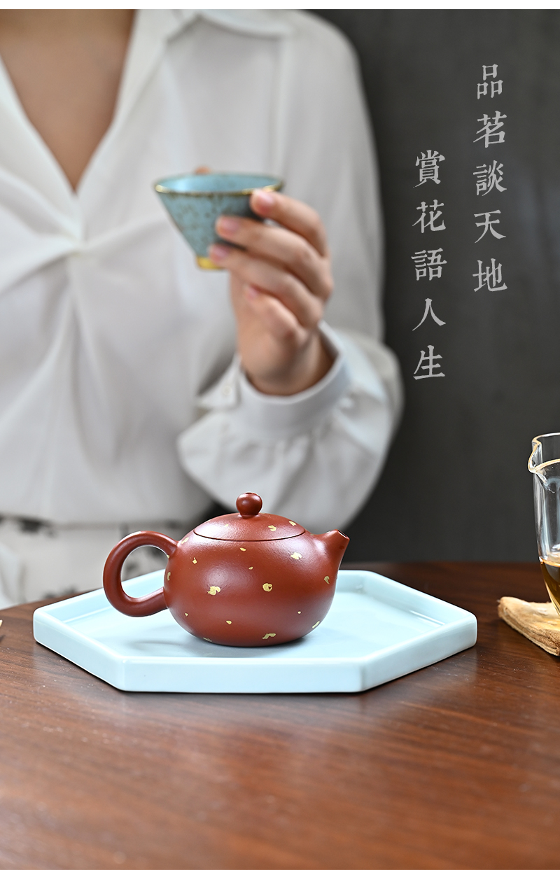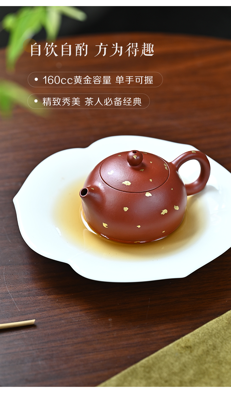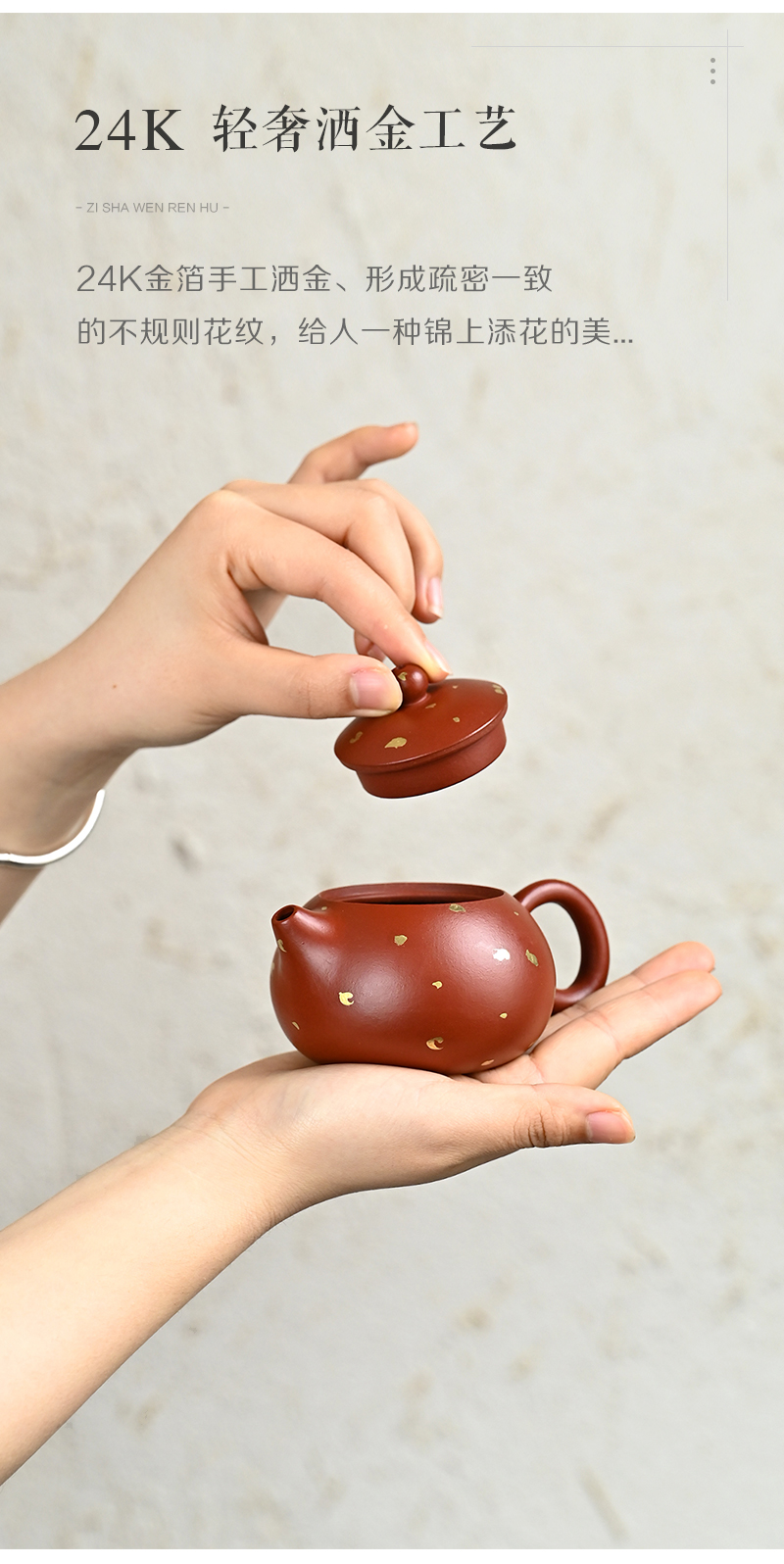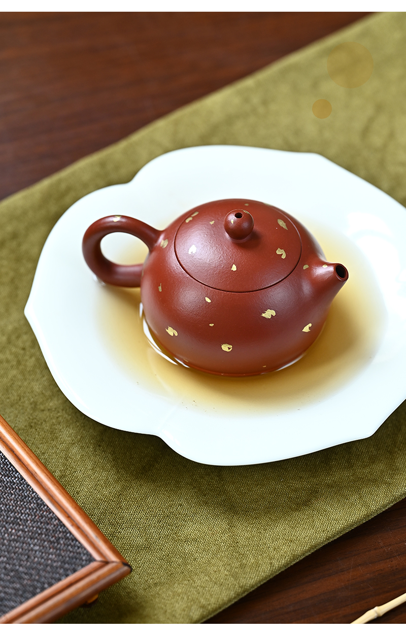 中秋有礼!朱泥大红袍洒金系列 『西施』宜兴原矿紫砂壶 收藏紫砂艺术品 160cc