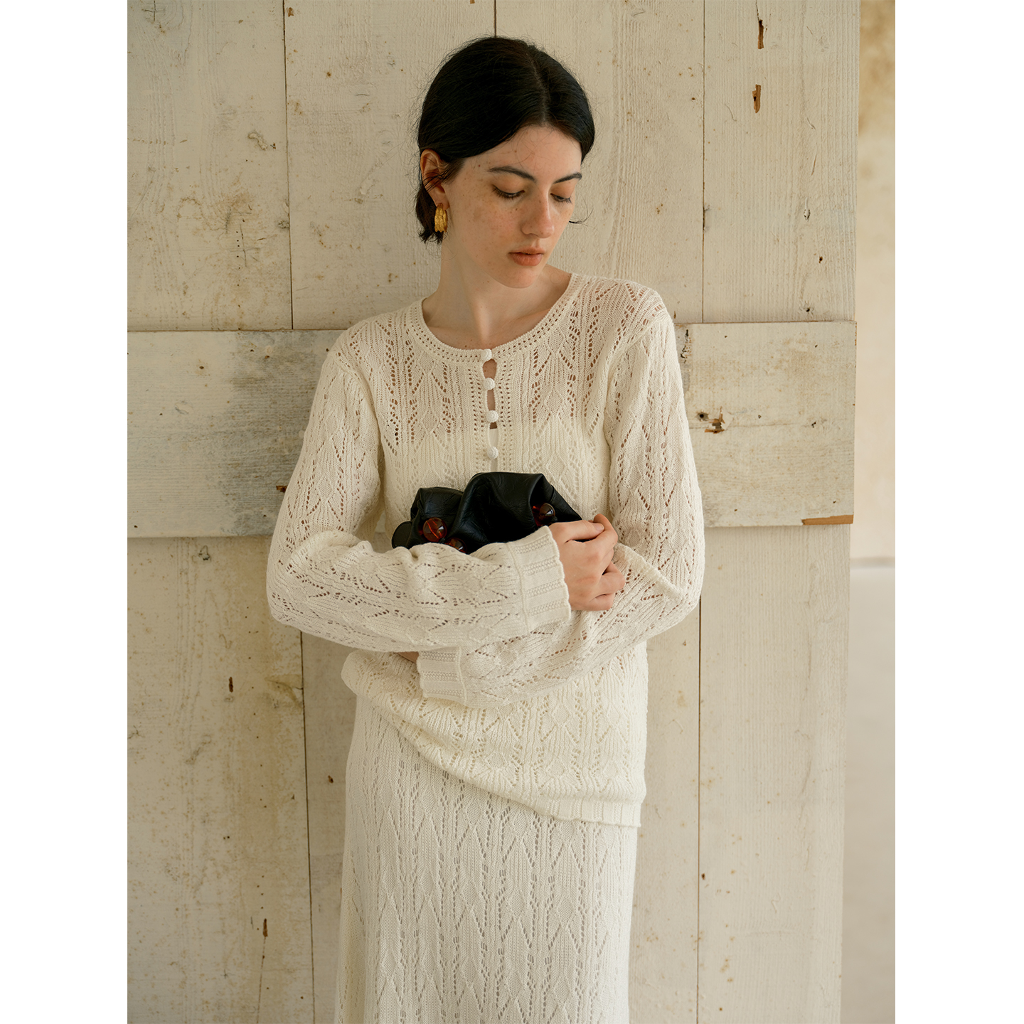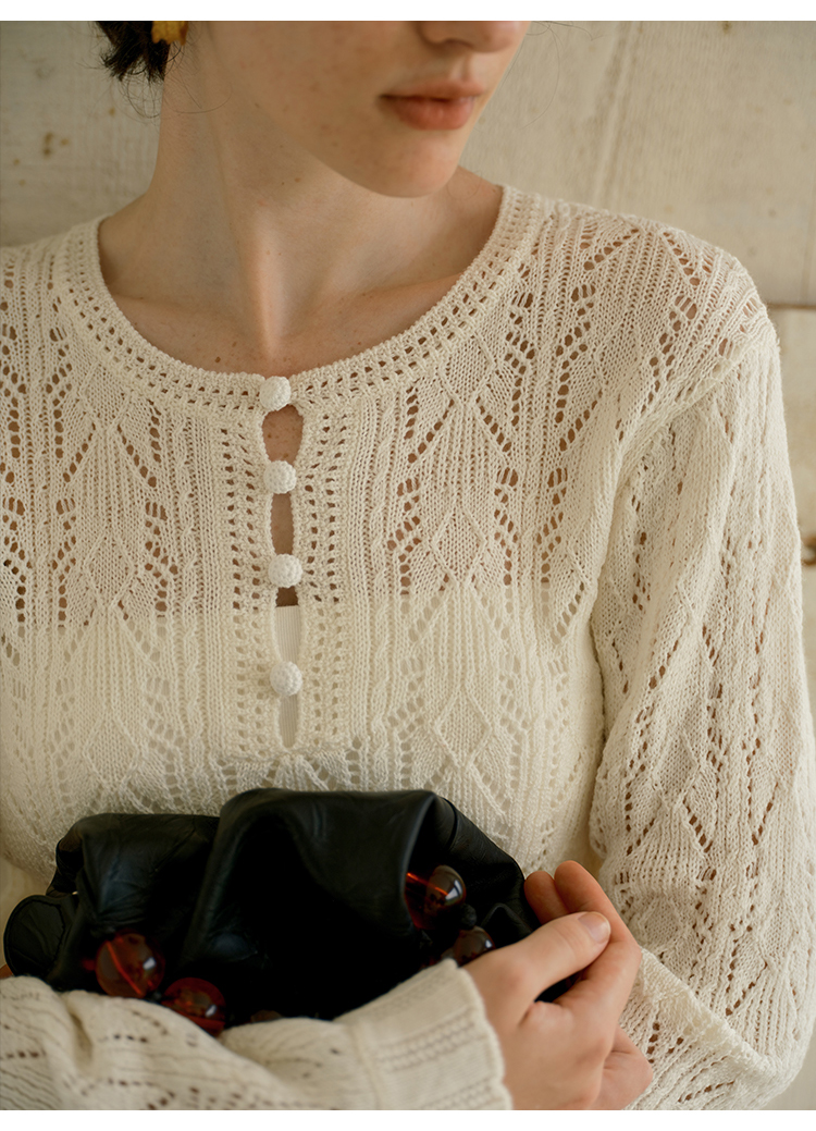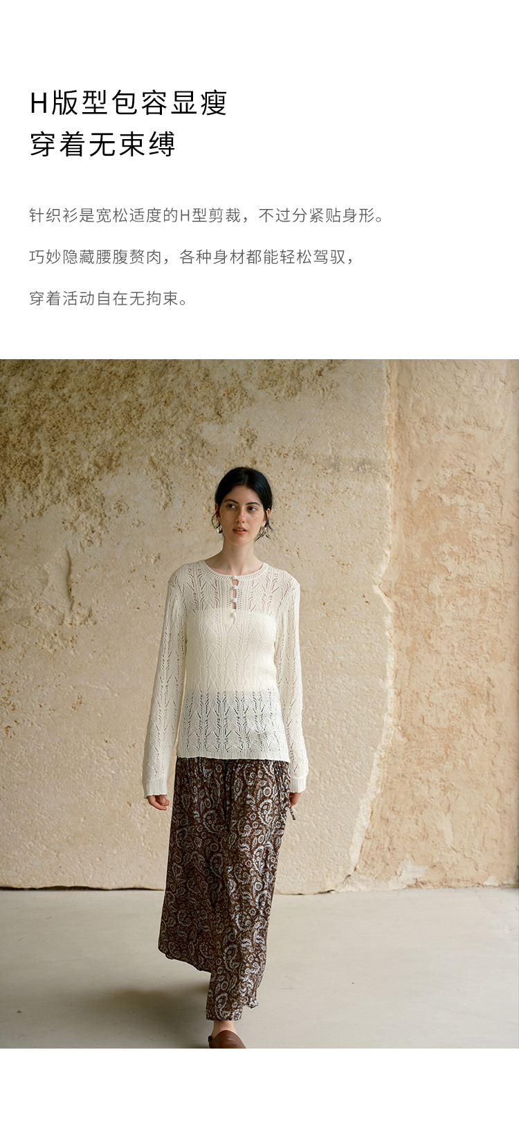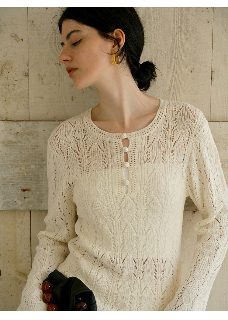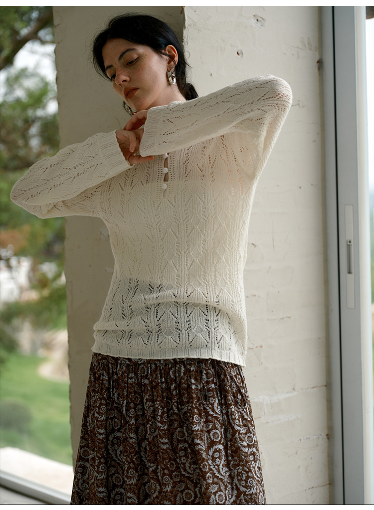 HeyDress镂空勾针圆领毛衣/钩针A摆松紧腰针织羊毛半裙